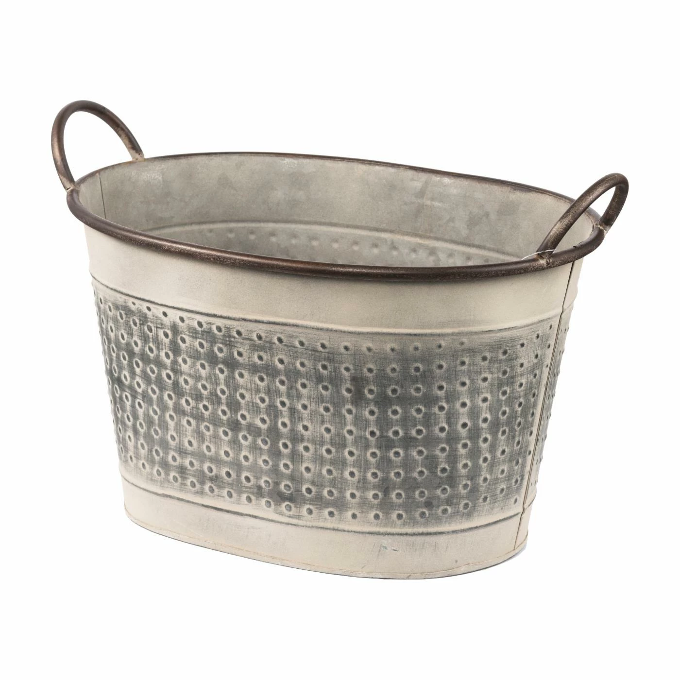 Bring rustic style to any room in your home with the A and B Home Antique Oval Metal Planter. This durable iron planter features white highlights calling attention to the texture of the bucket and brown accents for a loved-over-time appearance.