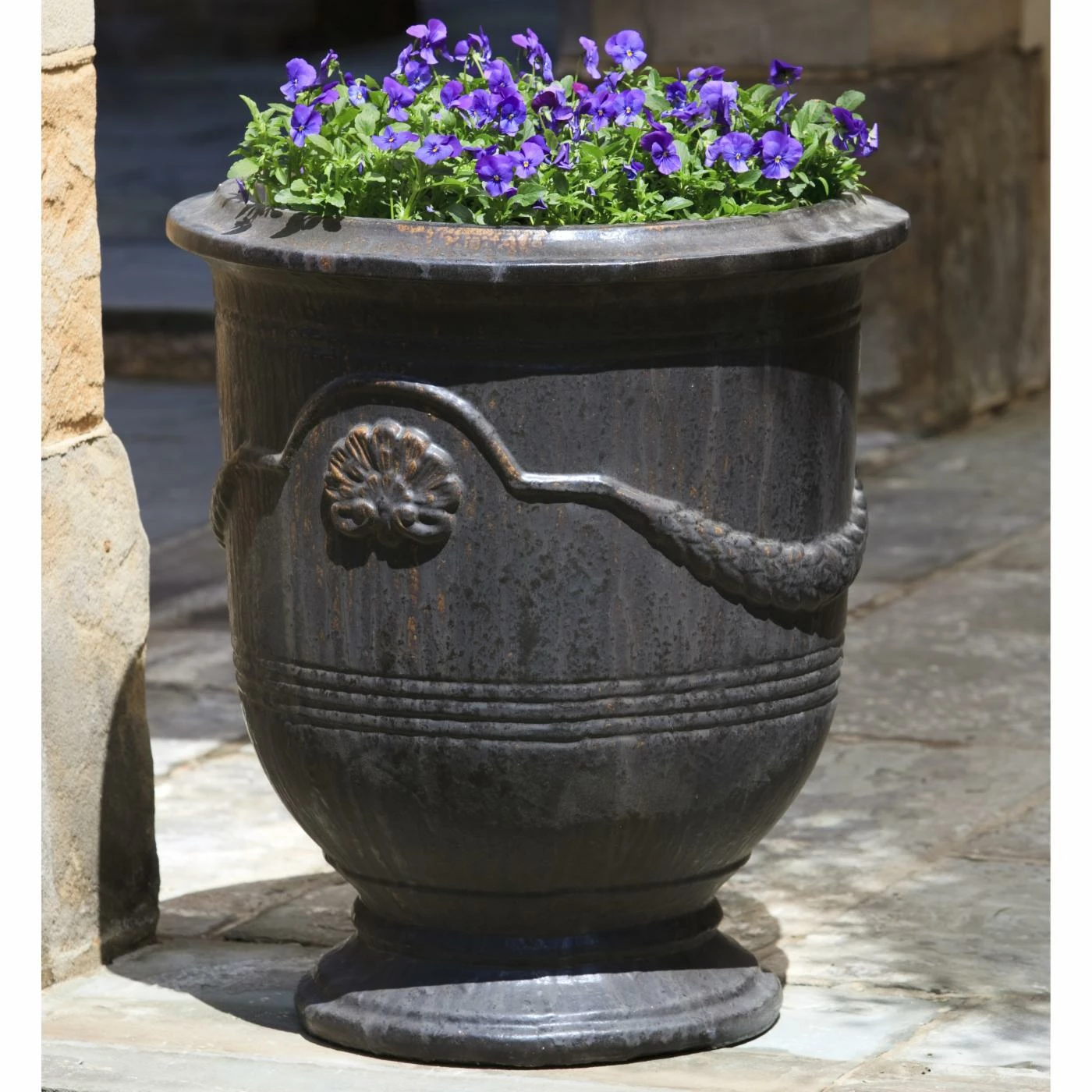 Durably constructed, this Campania International Coquille Anduze Urn Planter – Set of 3 – Antique Glaze features detailed etchings that make it not only functional but visually alluring. Each of them are made of terra cotta material for long-term use in rough outdoor conditions and temperatures. Round in shape, they are also gray with an antique finish for a rustic, earthy look.