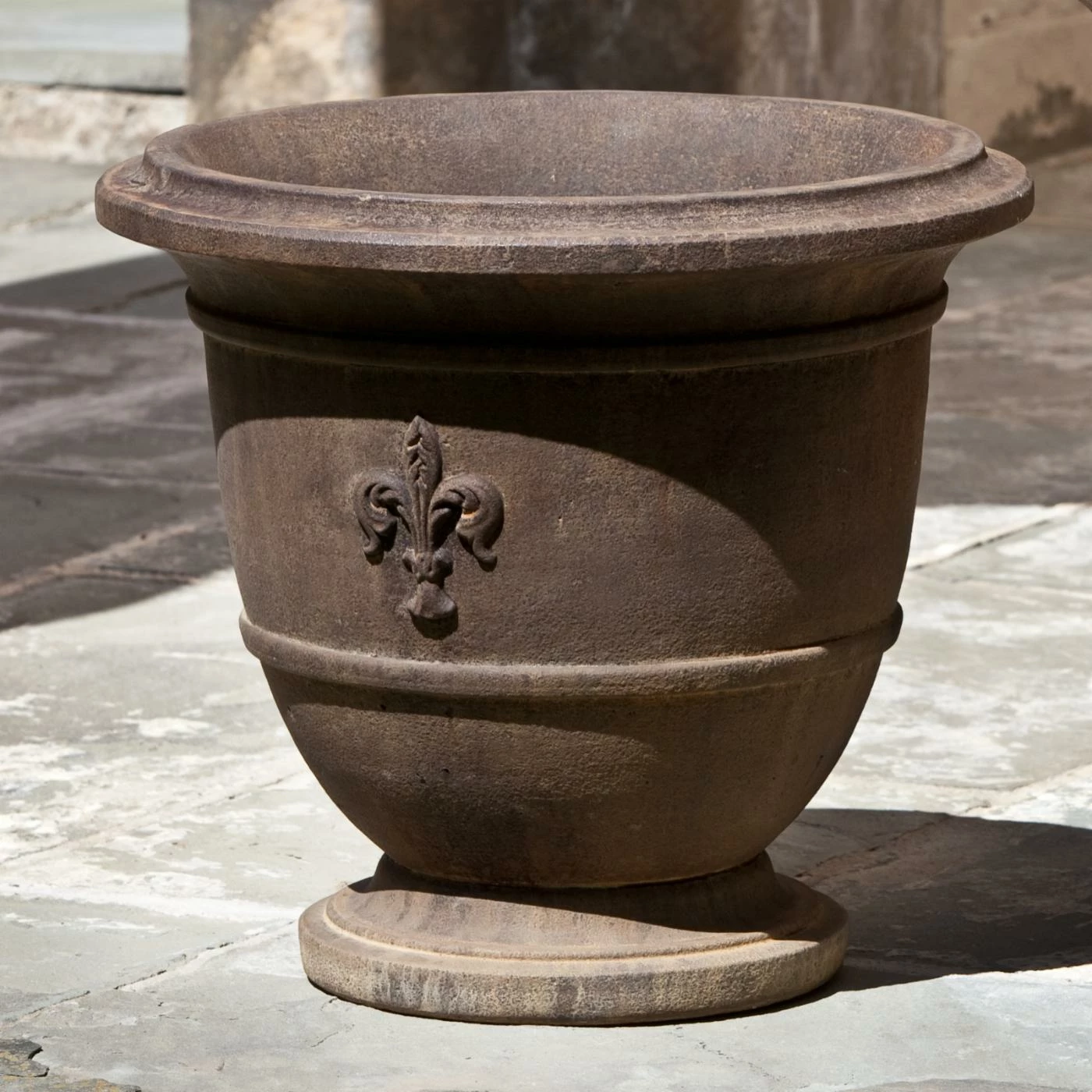 Add a touch of French Provincial charm to your home’s entrance with the Campania International Fleur de Lis Small Cast Stone Urn Planter. This urn-shaped planter is constructed from durable concrete and cast stone. It features a traditional fleur de lis accent and comes in a choice of available finish options.