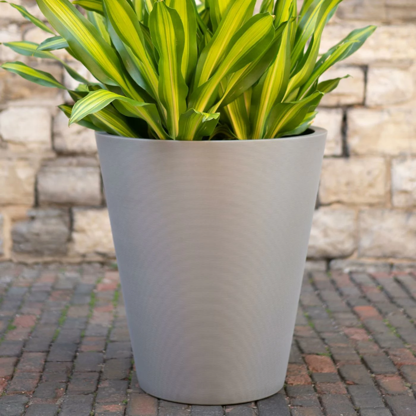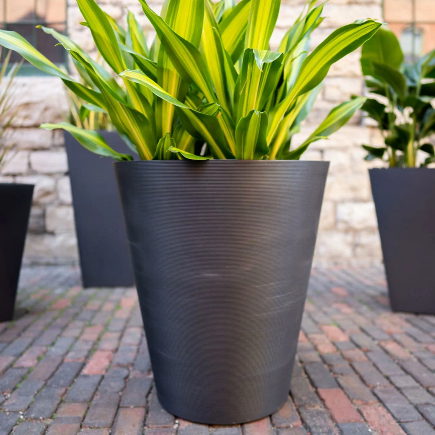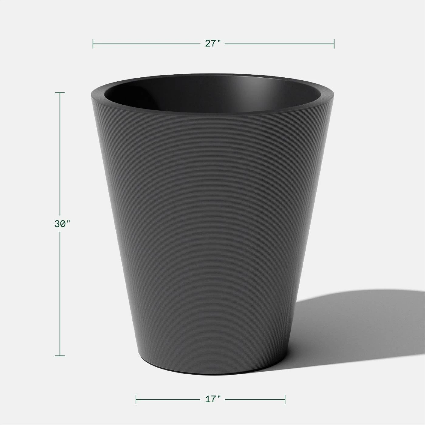 The stylish, lightweight, and durable Veradek Pro Series Curve 30 in. Grooved Outdoor Round Planter is an impressive way to decorate your outdoor space. This outdoor planter is roto-molded of commercial-grade polyethylene with a grooved design. It comes in a choice of available colors.