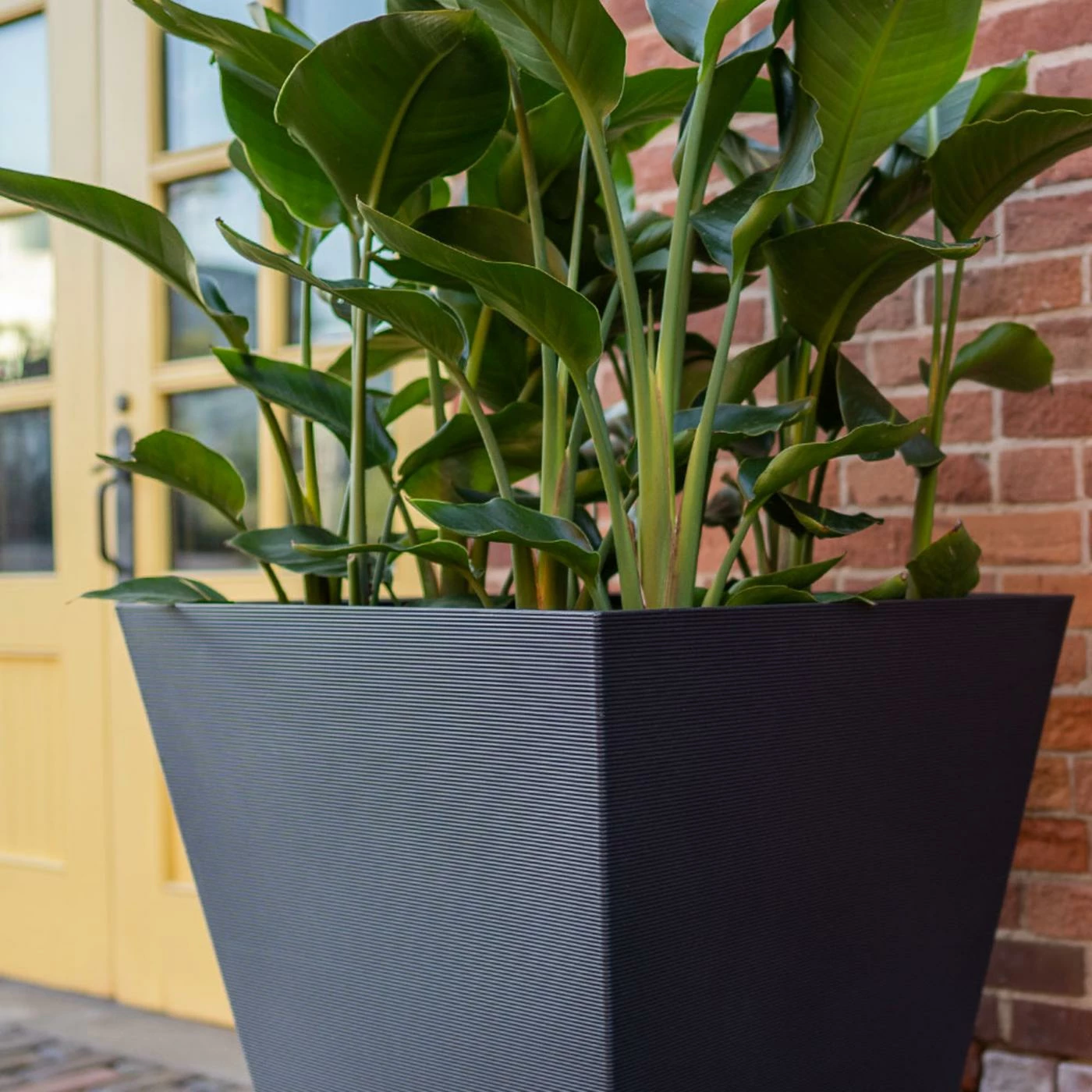 Update your front porch or back patio by planting flowers in the Veradek Pro Series Linear 30 in. Grooved Outdoor Square Planter and styling wherever you choose. For years of use, this square outdoor planter is roto-molded of commercial-grade polyethylene. It comes in a choice of available colors.