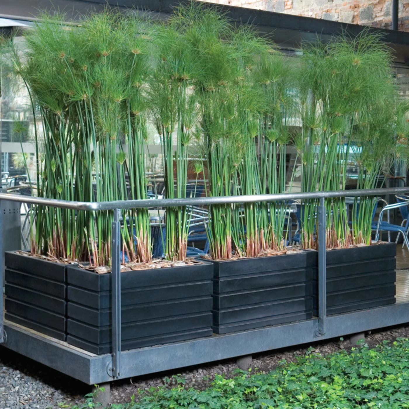 You’ll love the look the Rectangle Resin Ellis Planter adds to your outdoor terrain. This modern, elegant planter has casters that twist onto the bottom so that they’re barely visible once in place. Designed with a double wall for superior weather resistance, these planters are ideal for commercial landscaping. Available in your choice of color and size.