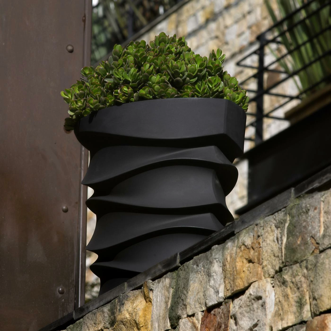 - Contemporary, eye-shaped resin planter