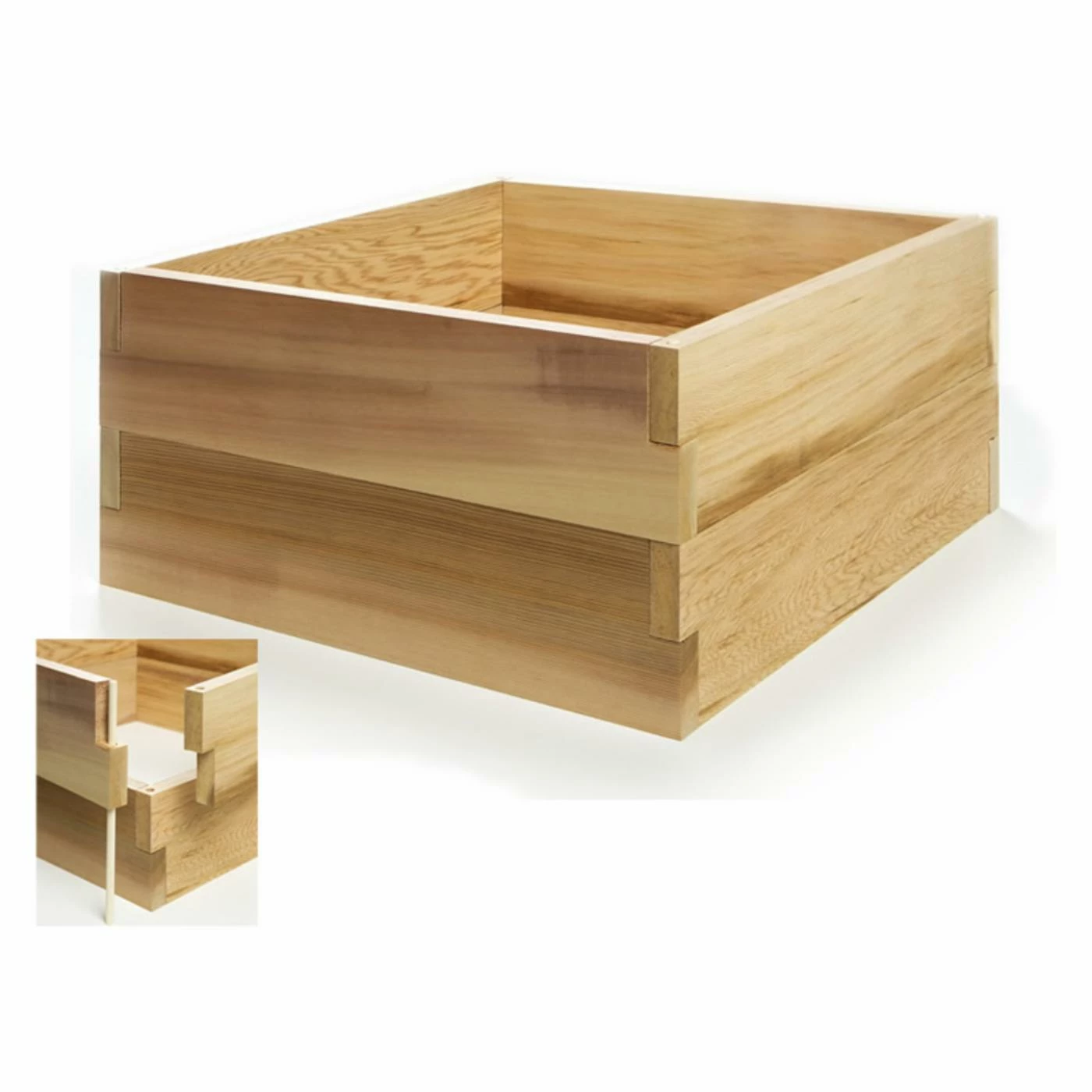 The All Things Cedar 3 ft. Raised Garden Bed Vegetable Box – Double Height lets you cultivate and harvest deep-root vegetables, such as carrots and potatoes, without digging up your top-soil. This double-height planter is a great beginner or supplemental gardening space. The frame is made from planks of thick red cedar and finished in a natural cedar color. The wood is resistant to rain, sun, pests, and rot. Assembling the bed takes just a few minutes.
