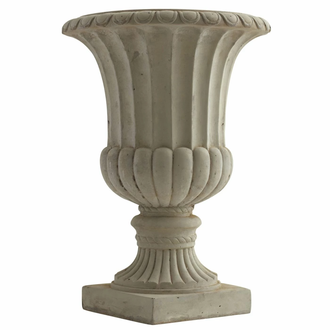 Timeless details and a weathered natural finish give the Nearly Natural Large Sand Colored Urn its classic elegance. Tuck an artificial plant into this urn to add height and visual intrigue. It’s made of fiber clay that’s lightweight yet durable enough to use indoors or out.