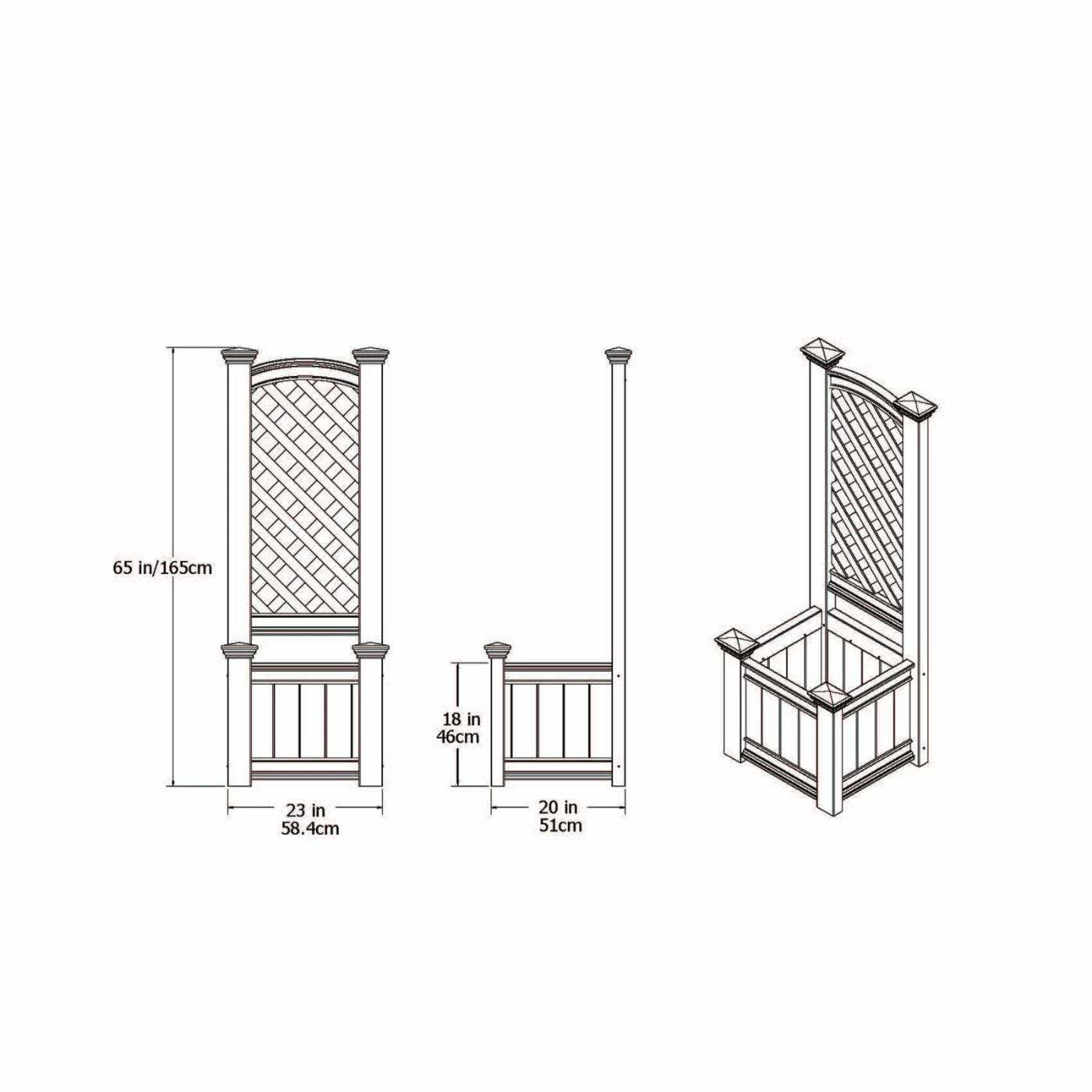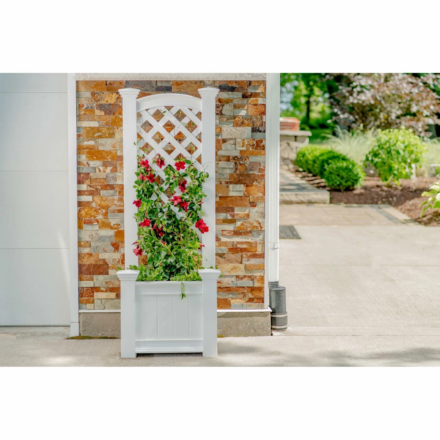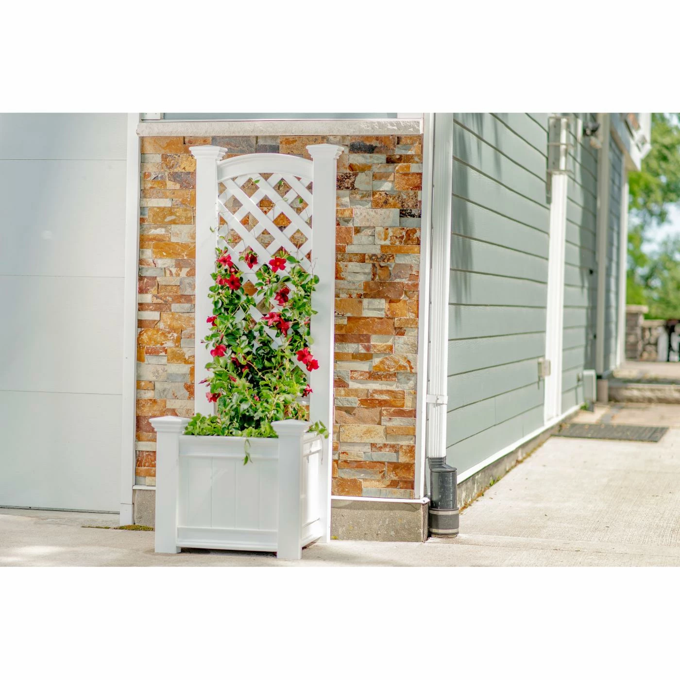 For climbing vines and sprawling flowers, nothing supports your gardens like the Square Vinyl Kensington Planter with Trellis. Designed to make a statement, this trellis encourages and enhances the growth of all your favorite greenery and blossoms. It’s crafted from PVC that won’t rot, warp, crack, or yellow, meaning that this garden piece is built to last. You never have to paint it in order to keep that fresh-coat feel.
