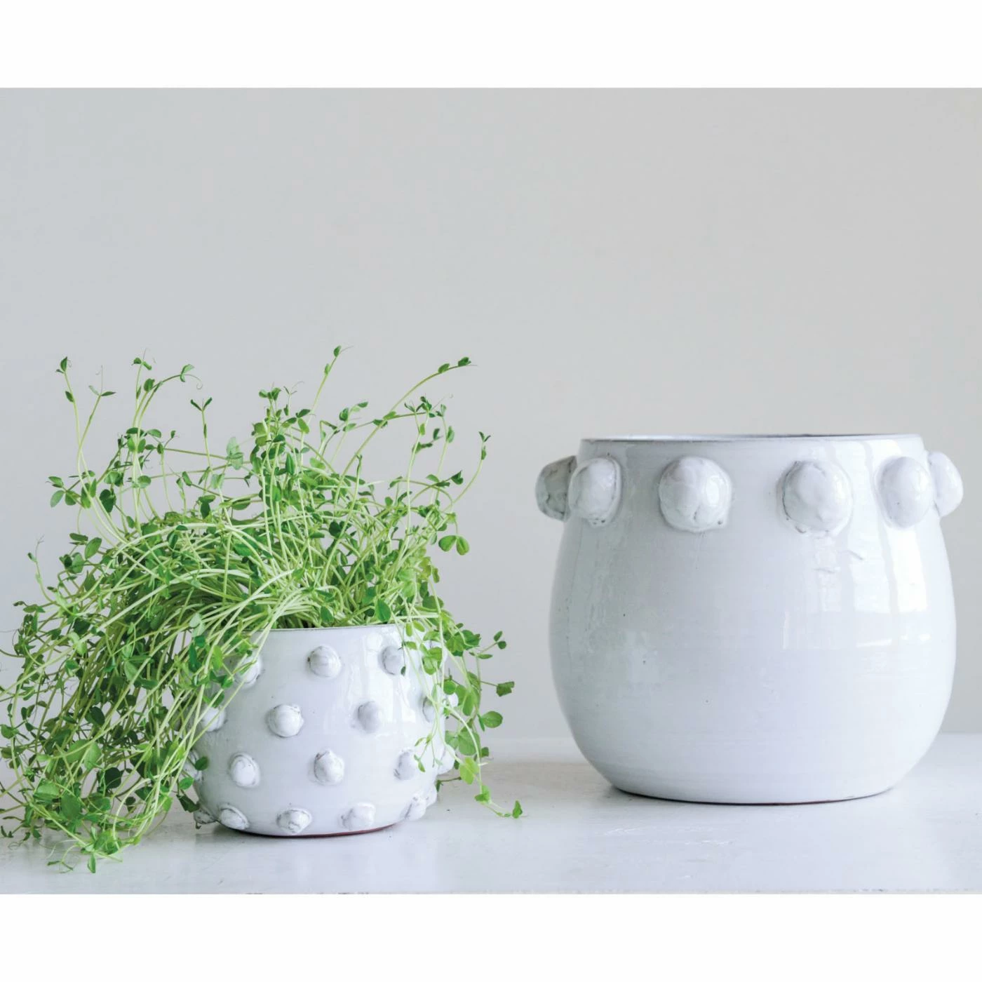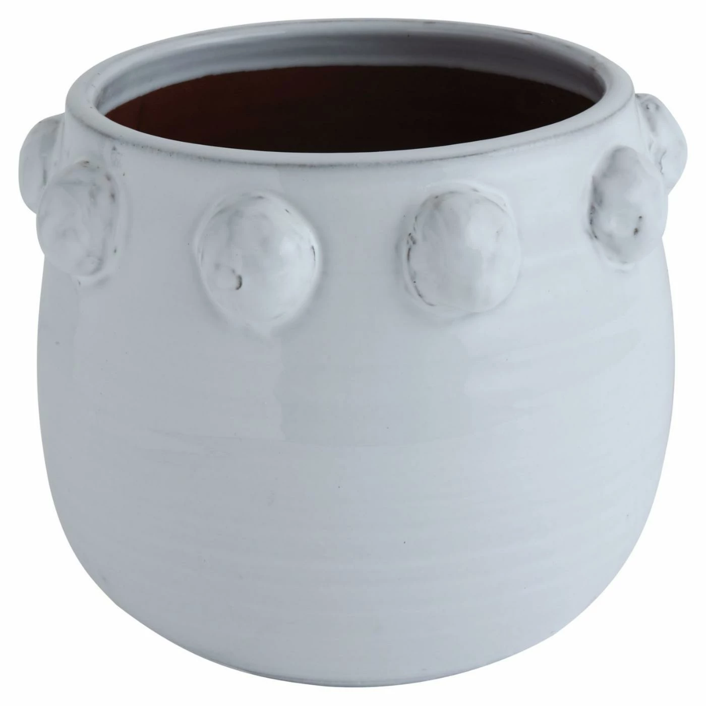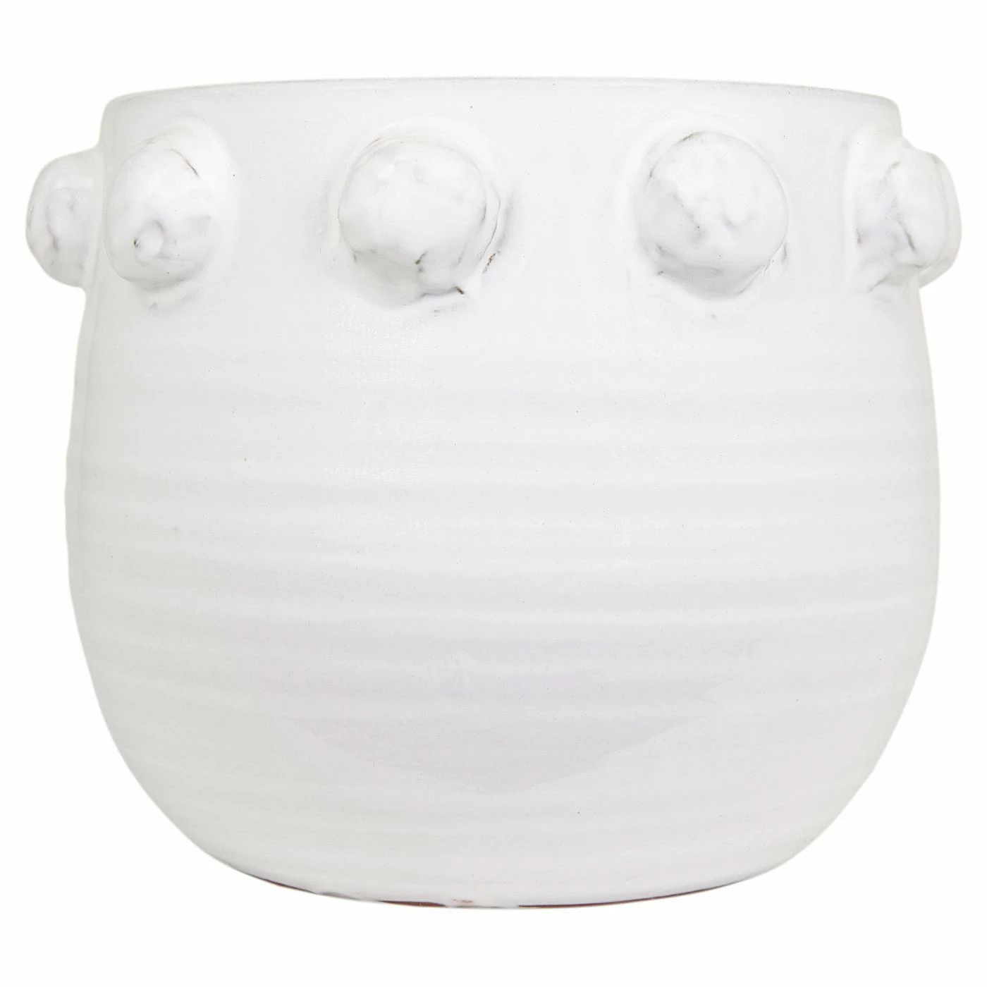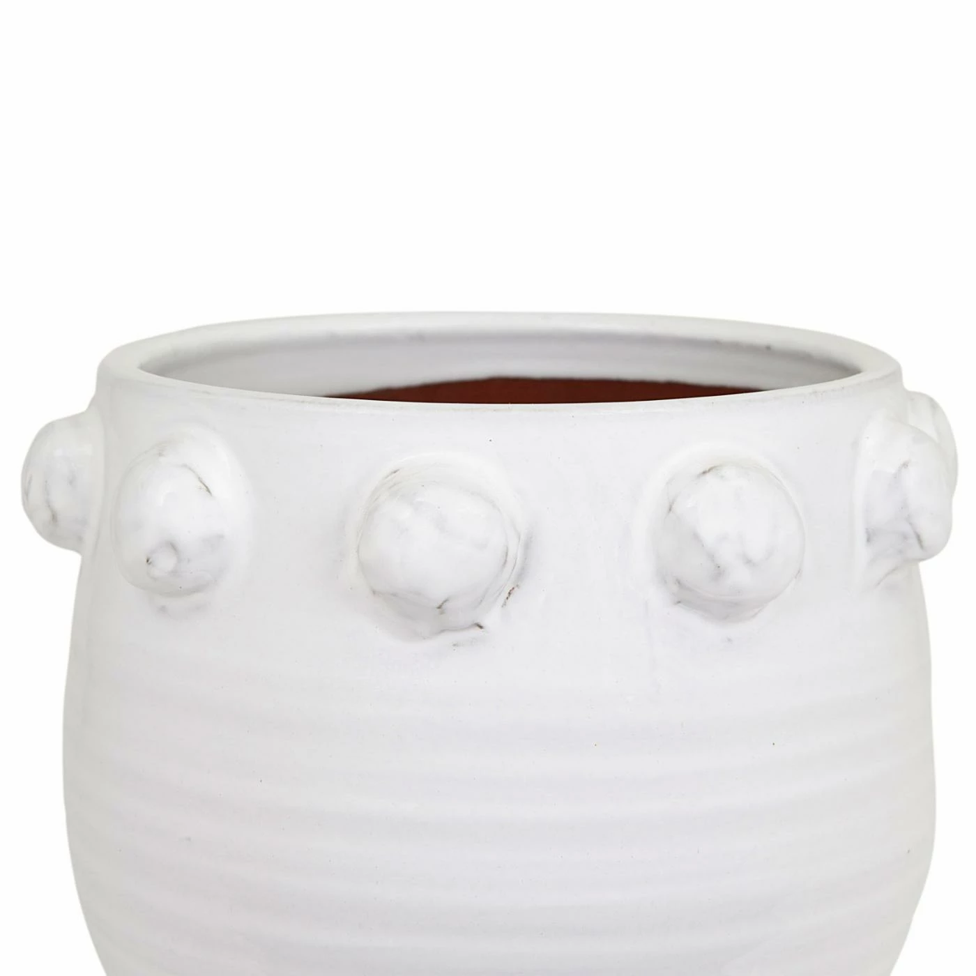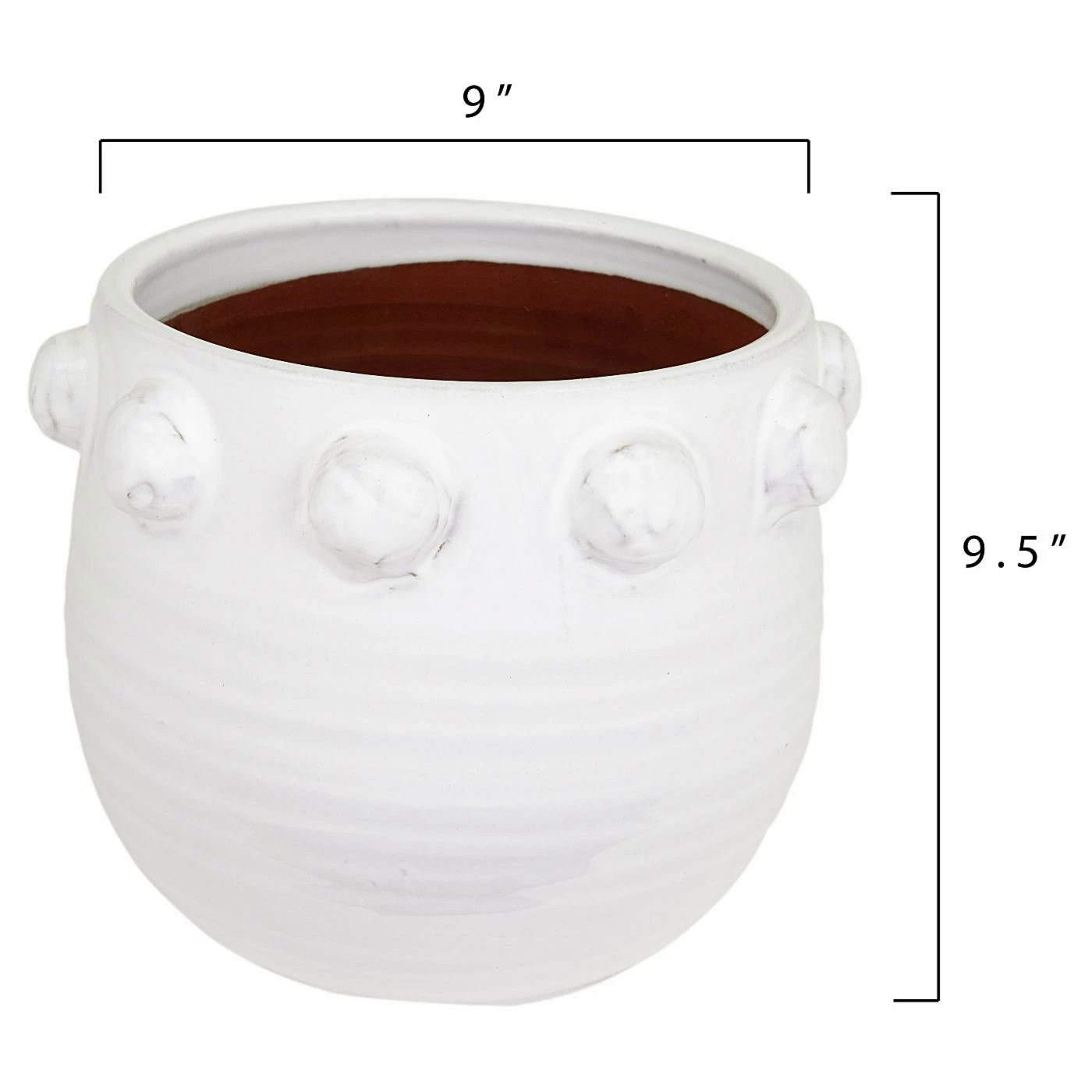 The 3R Studios Bubble Design White Terracotta Planter is going to do just as much to improve your space as the plant that you put in it. This contemporary piece is crafted from high-quality terra cotta with a distressed finish in white. The 7.75-inch opening makes it easy to pot almost any plant. On the outside is a series of bumps that add an almost organic feeling to the design.
