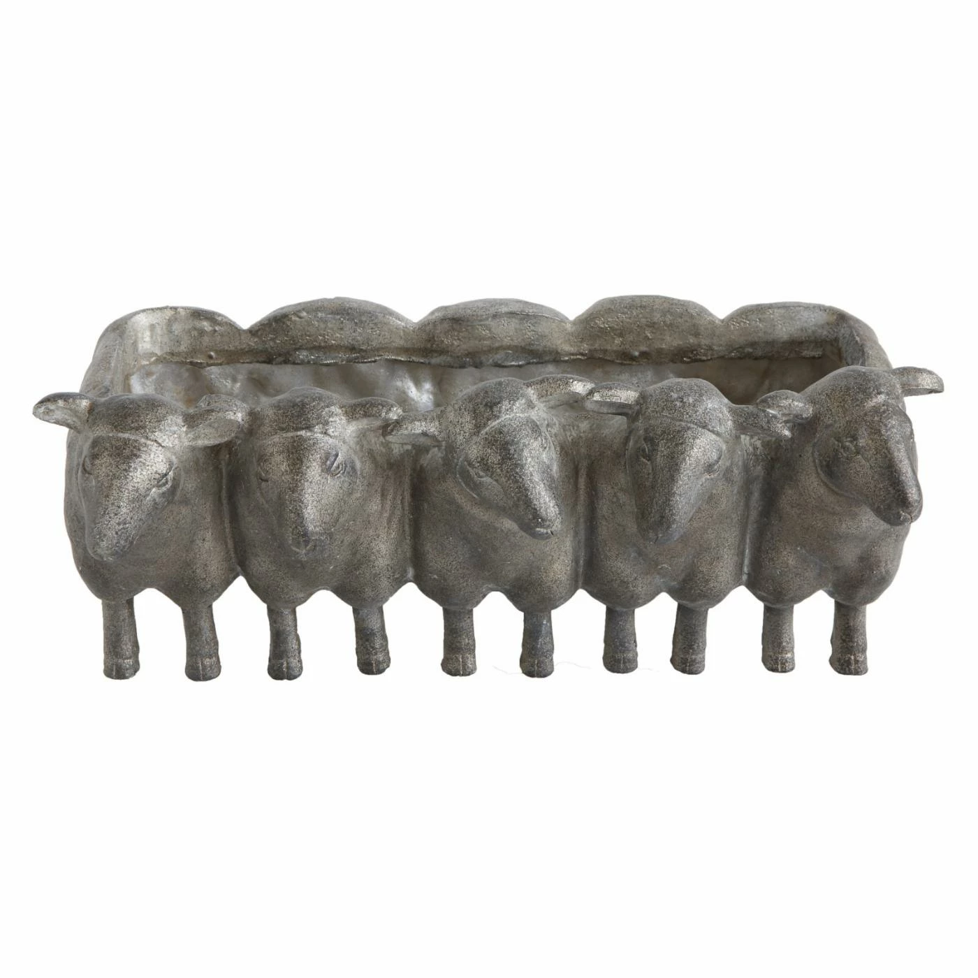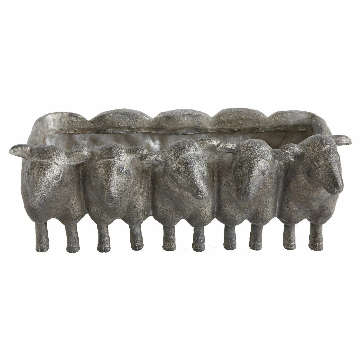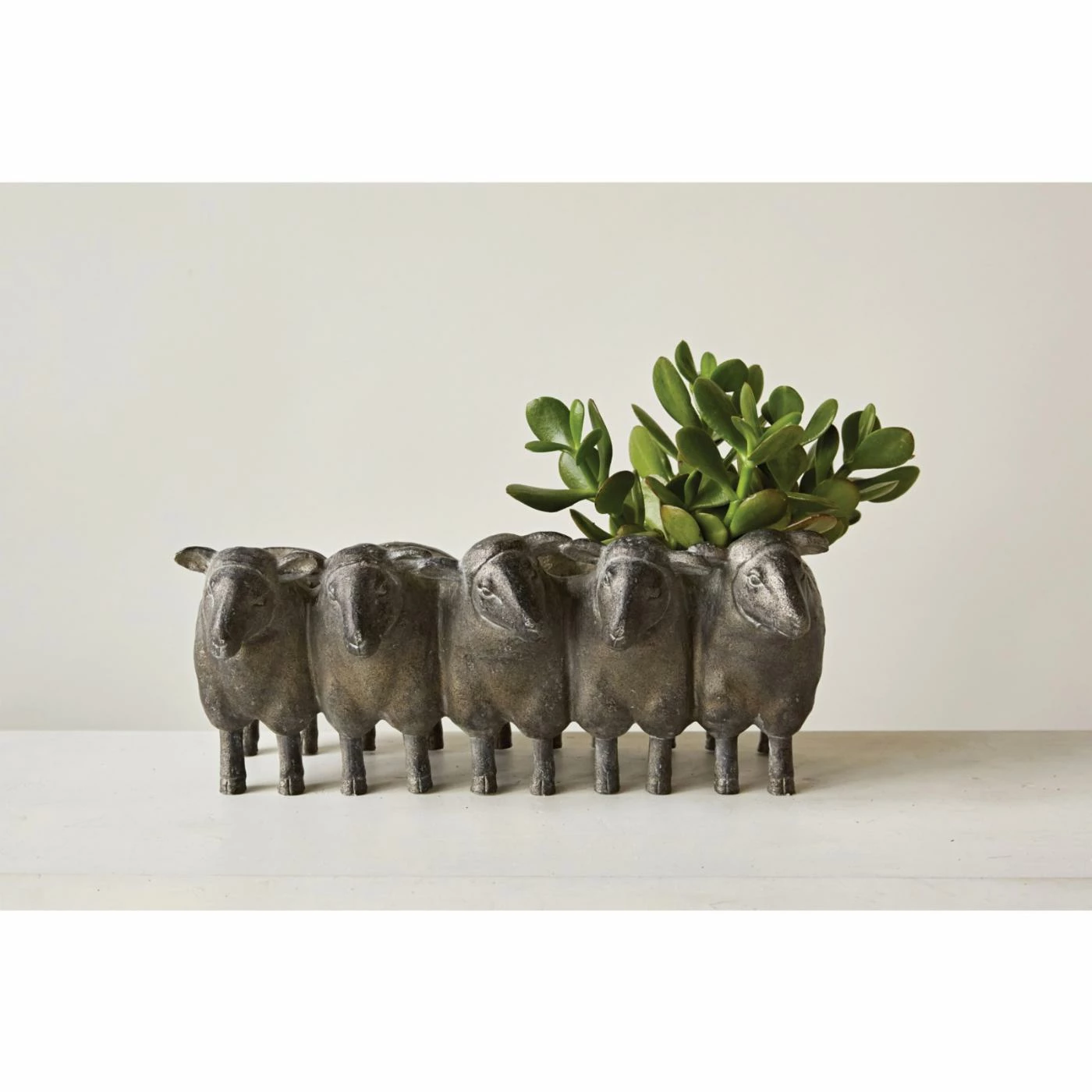 The 3R Studios Resin Sheep Planter has a contemporary style with just enough playfulness that you can add it to almost any space. This piece is cast from high-quality resin with a distressed iron finish. The cut-out interior is perfect for pencils, decorative objects, or even a lucky succulent. Even without adding anything to it, the sculptural style of this planter is going to be a welcome addition wherever it lands.