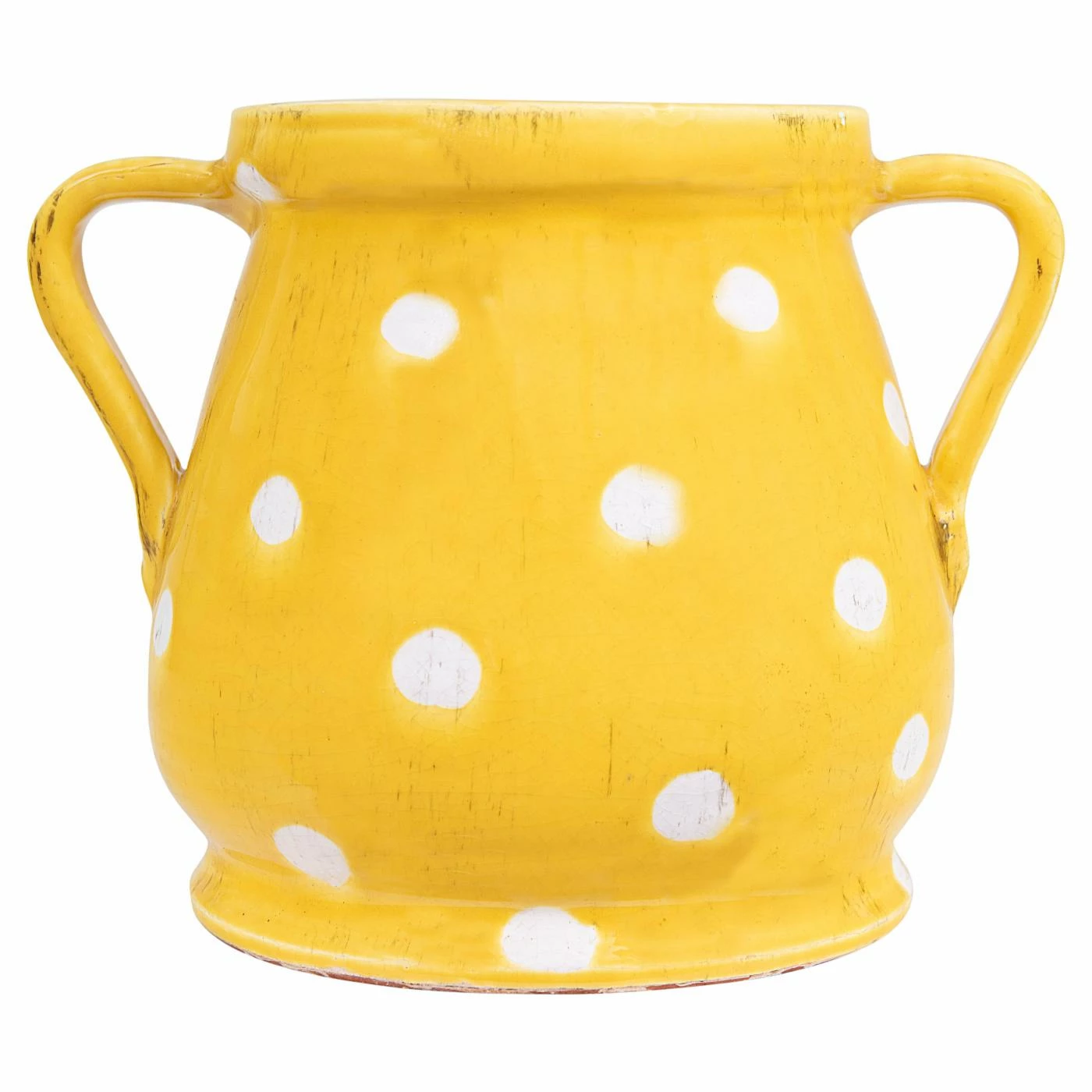 Seriously, how can you look at the 3R Studios Yellow Decorative Terracotta Planter and not feel like your day is getting just a bit sunnier? This pleasant pot is crafted from high-quality ceramic with a glazed finish of white spots on a field of yellow. A pair of oversized handles give it an old-school appearance. This planter would be perfect for a potted plant or cut flowers, or you could simply use its cheery style to brighten up any room.