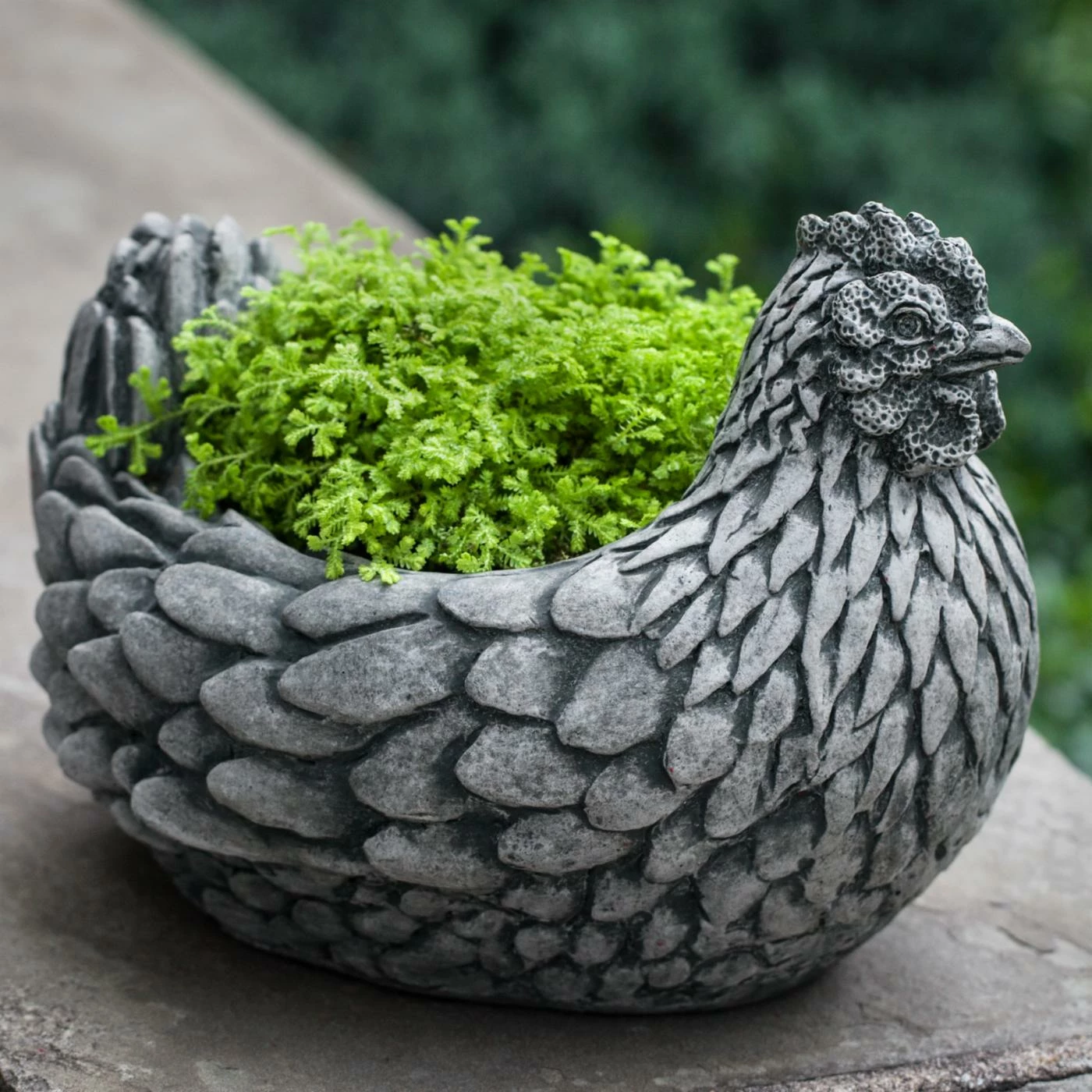 The Campania International Chicken Planter is richly textured and features a realistic chicken design. It’s handcrafted of weather-resistant, durable cast stone. It comes in your choice of available finishesΒ and is just the right shape for air plants or succulents.