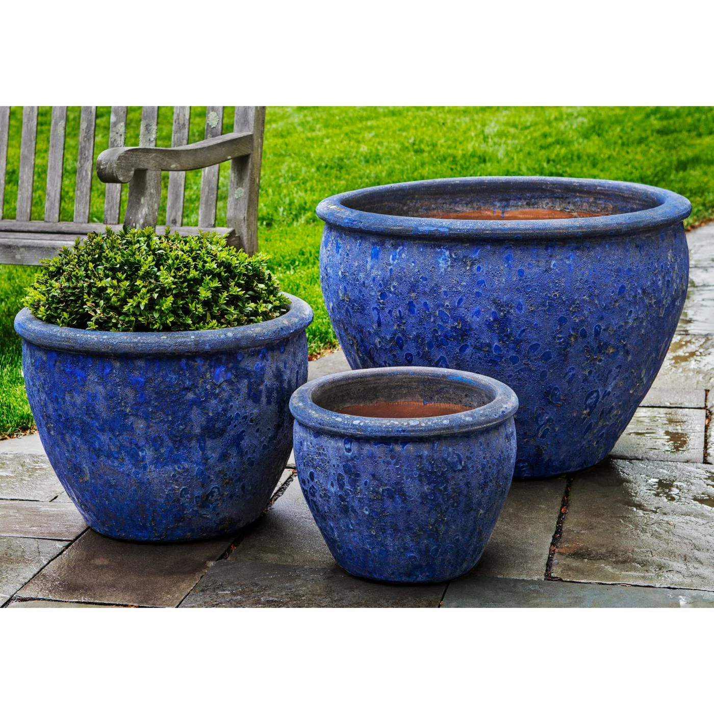 With its classic round shape and rimmed design, the Campania International Corfu Round Planter – Set of 3 brings traditional glory to your landscape. This set includes three planters of various size. Each is hand-crafted of terra cotta clay, hand-glazed in your choice of rich color, and high-fired for durability and frost-resistance.