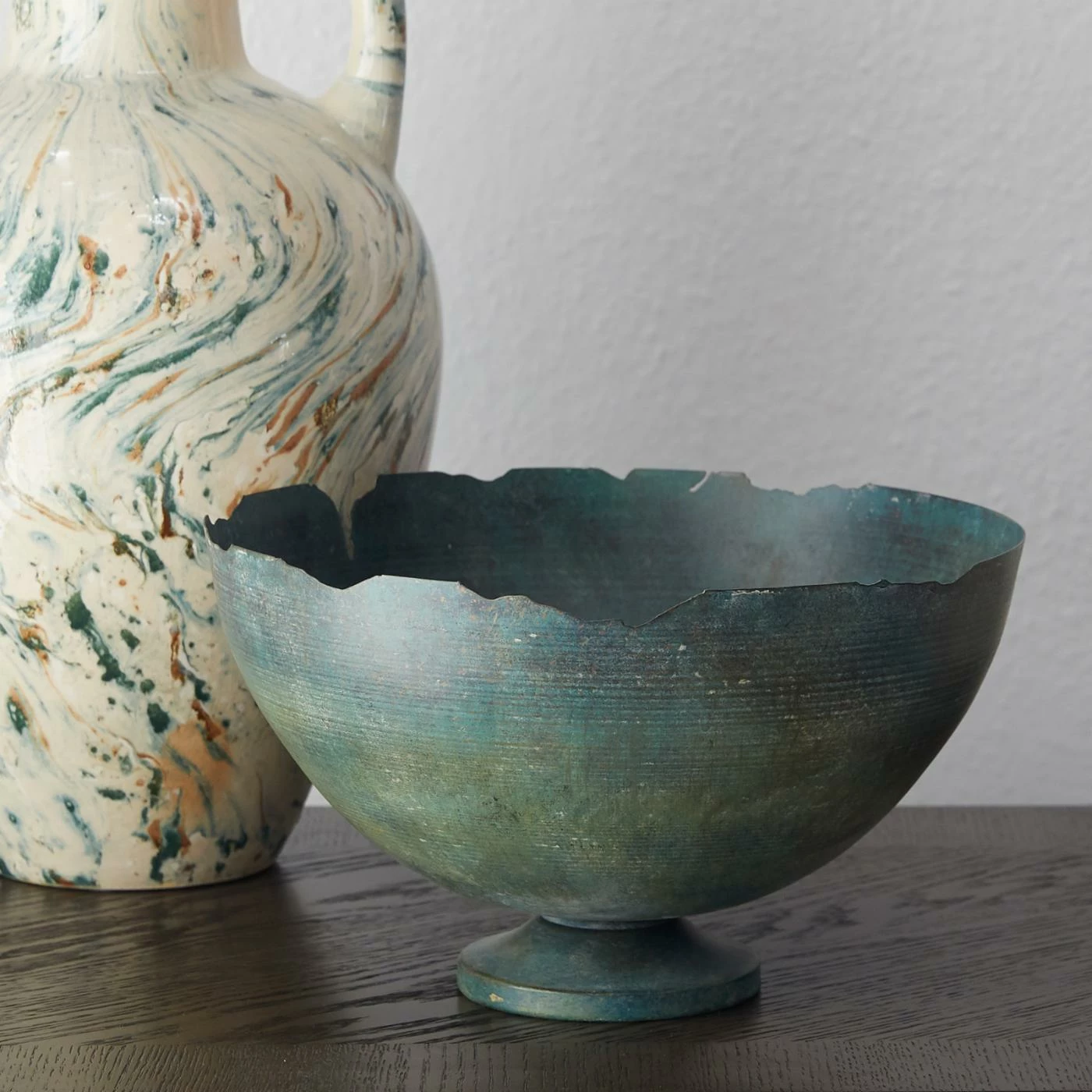 Made in a round bowl shape on a small pedestal with contemporary jagged edges, the Cyan Design Round Farmhouse Beauty Planter is a unique way to showcase your favorite plants at home. You’ll love this metal planter with its modern style and warm greenish patina finish for added flair.