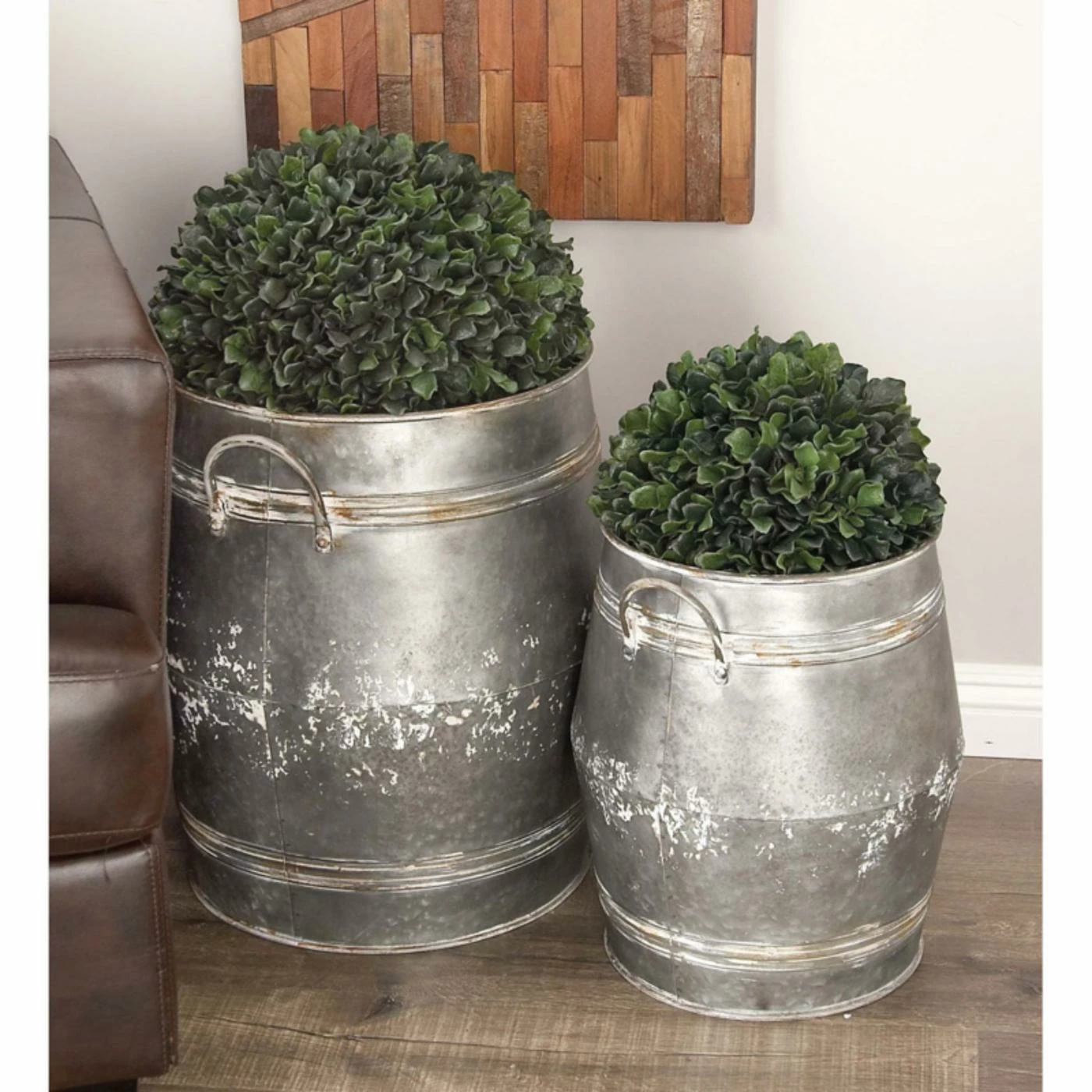 Distressed to perfection, the DecMode Barrel Metal Planters – Set of 3 add a vintage look to your urban, industrial, or antique-inspired home. These versatile planters can be placed indoors or out, and easily hold up to outdoor conditions. The craftsmanship and stability are sure to provide years of enjoyment.