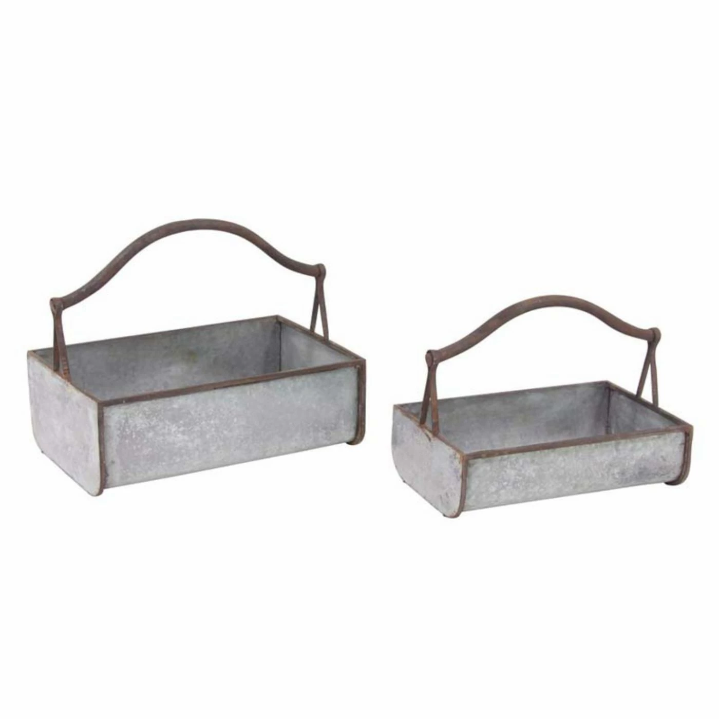 Get creative in your garden with the DecMode Farmhouse Iron Basket Planters – Set of 2, made of metal in a silvery finish with distressed brown details. This ultra-rustic set of two planters includes a curved handle on the top. Add an assortment of succulents or herbs to bring your home or garden a charming accent.