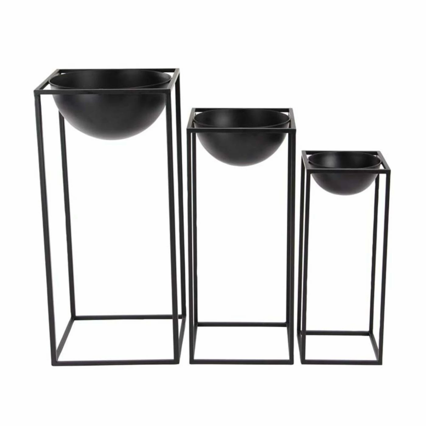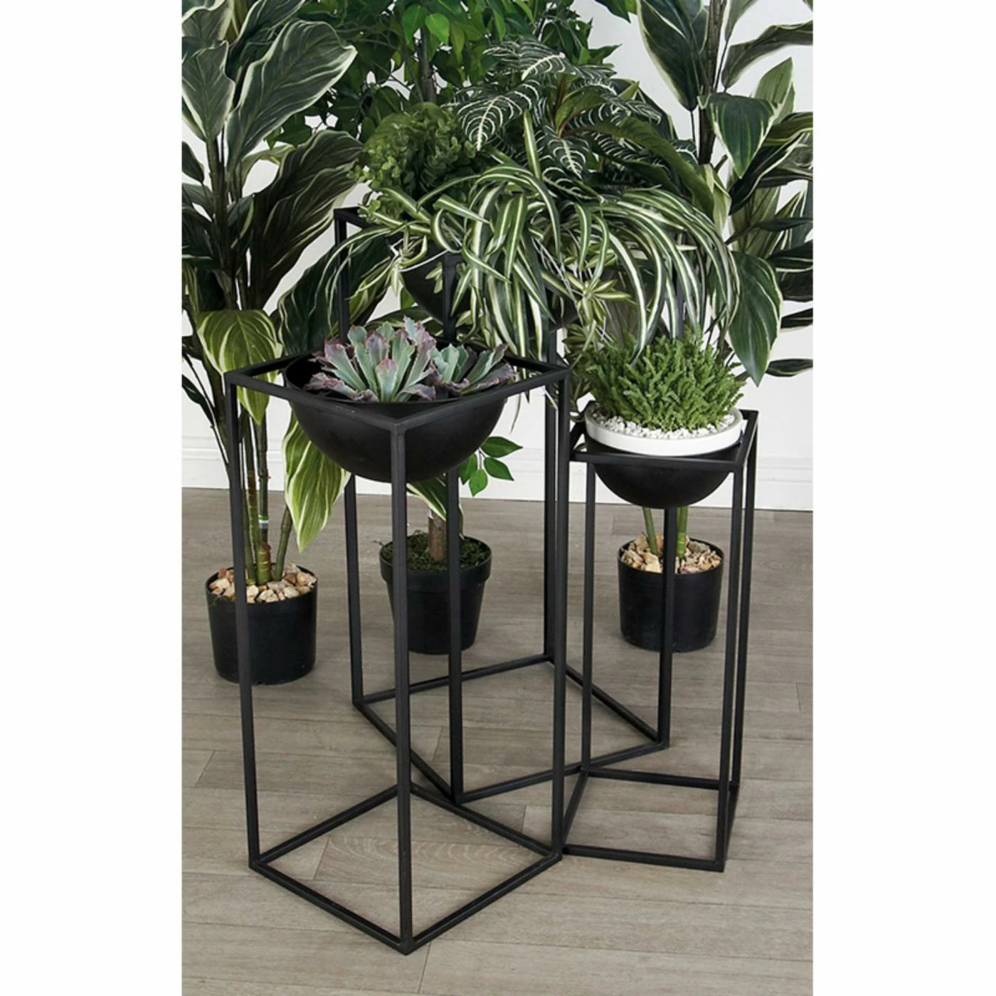 The DecMode Modern Iron Rectangular Framed Bowl Plant Stands – Set of 3 gives your garden or patio a totally modern vibe with its sturdy metal construction and an open rectangular cage-style design. This set of three different-sized plant stands is emboldened by its deep black finish. The inverted bowl shape on the top makes them the perfect home for a variety of plants.