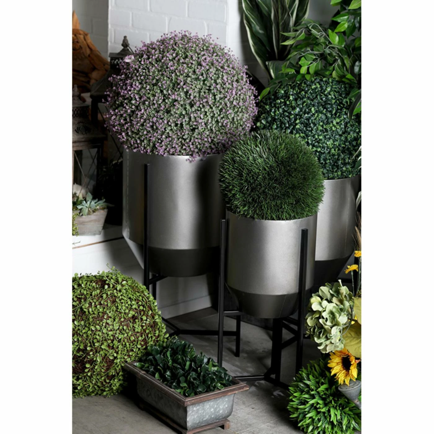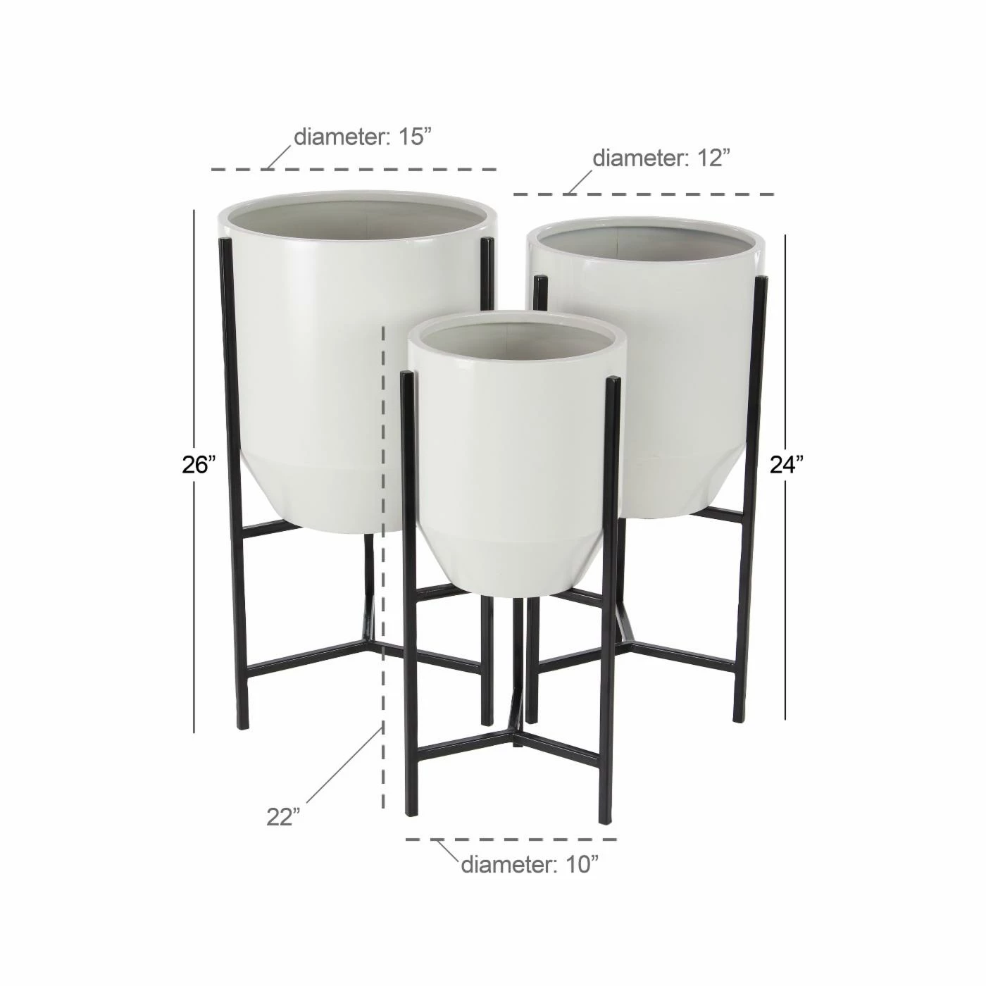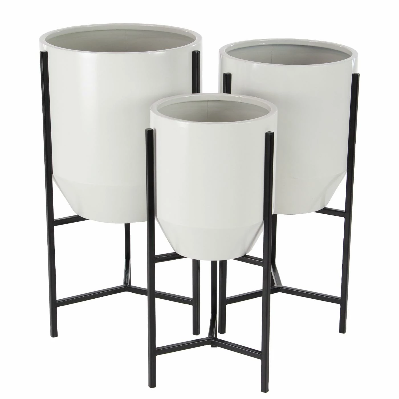 Designed to make your home or garden more dramatic, the DecMode Modern Iron Tapered Round Planters with Stand – Set of 3 features a trio of planters placed on black iron stands. The round tapered shape gives these planters an added contemporary touch. Fill them with colorful flowers or greenery to make your garden pop.
