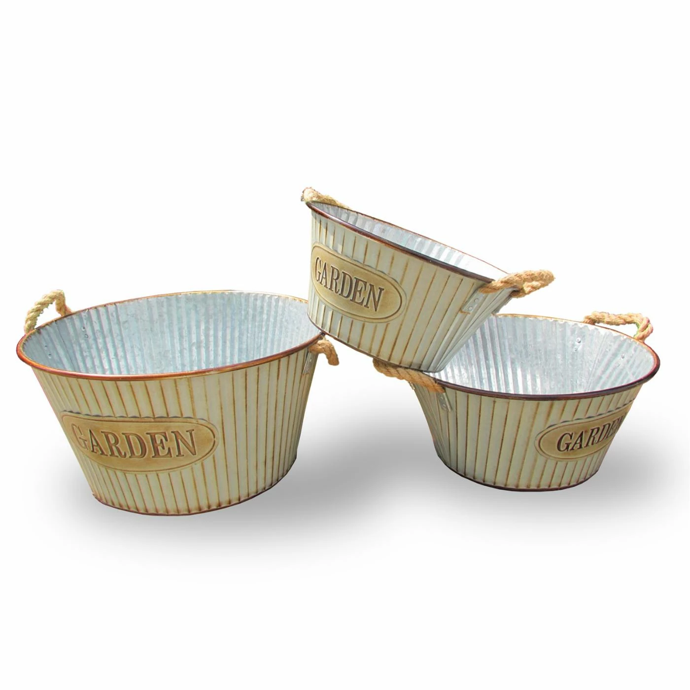 Add a warm touch to your outdoor space with the National Tree Company Tin Oval Pot Planter – Set of 3. The classic galvanized steel design and rope handles give this trio of oval pot planters an authentic vintage look. Create a nostalgic atmosphere on your patio, porch or in your flower garden with this functional set that includes plastic liners for use with fresh plants.