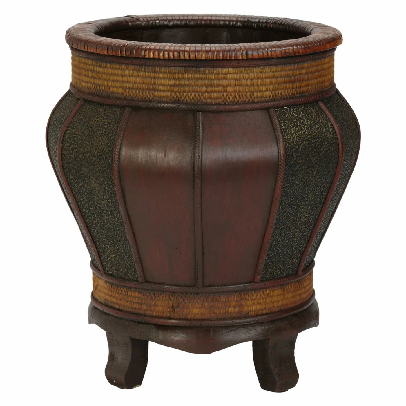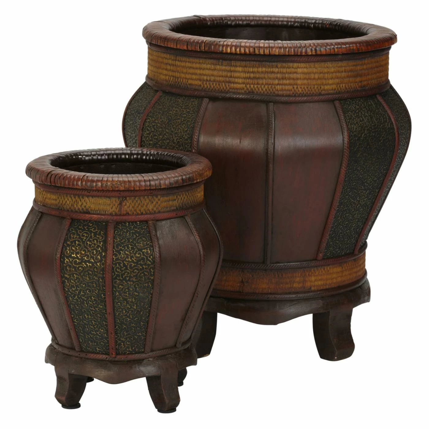 There are some planters we buy because we have a plant we love and now it needs a home, but the Nearly Natural Decorative Wood Panel Planters – Set of 2 is the kind of planter that you buy first, then you shop for the perfect plant that gets to call it home. This two-planter set is made from wood panels that alternate between a smooth, reddish-brown panel, or panels with an intricately pressed vine pattern. The panels are divided by a rope-style carved detail, and the mix of light and dark brown tones gives it a dynamic appearance. At the top and bottom is a cocoa-colored weave that gives it a basket-like texture. Each piece stands on solid wood legs for a high-end appearance. These planters are intended for indoor use.