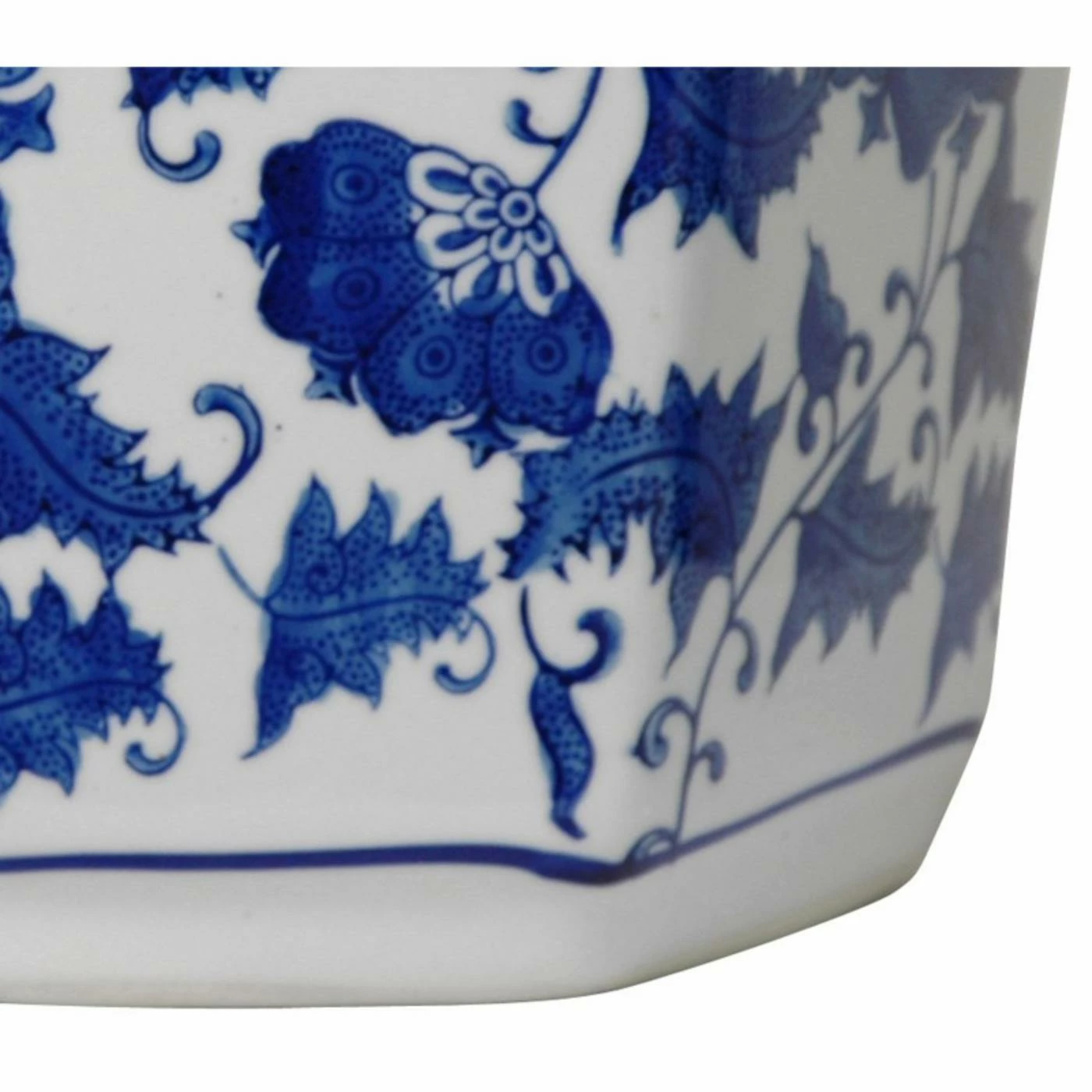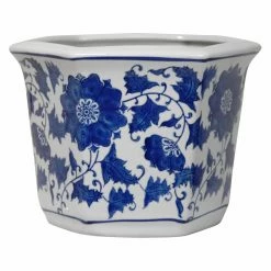 An eye-catching blue and white floral motif makes the Oriental Furniture Blue & White Floral Porcelain Flower Pot a stylish and appealing addition to your home. This hexagonal planter is constructed using durable porcelain. The attractive glaze finish gives this pot a timeless appeal.