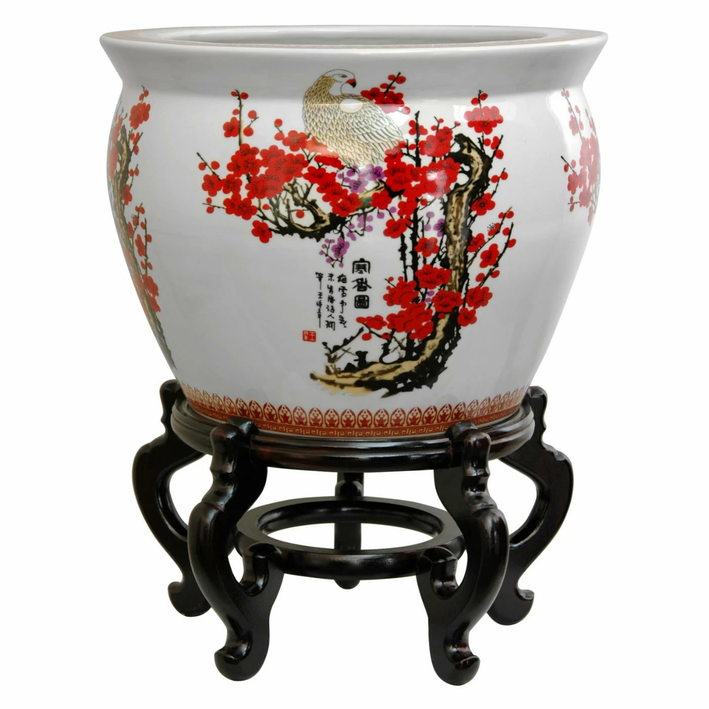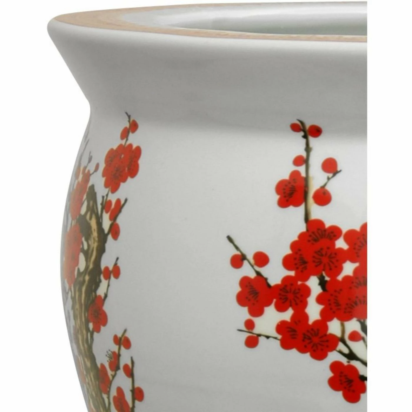 Introduce a pop of color to your space by showcasing the Oriental Furniture Cherry Blossom Porcelain Fishbowl Planter. This luxurious planter boasts a white, red, and black color scheme with a cherry blossom motif for an elegant look. Constructed using durable porcelain, this chic design is excellent for displaying your plants. The stand is not included.