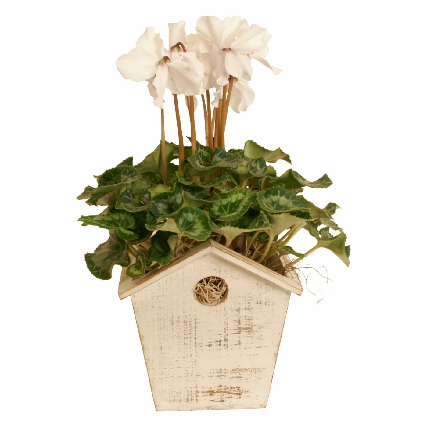 Give your favorite plant a rustic update with the Wald Import Rustic Wood Birdhouse Planter. This wood planter offers a whitewash finish that is distressed to reveal brown undertones.