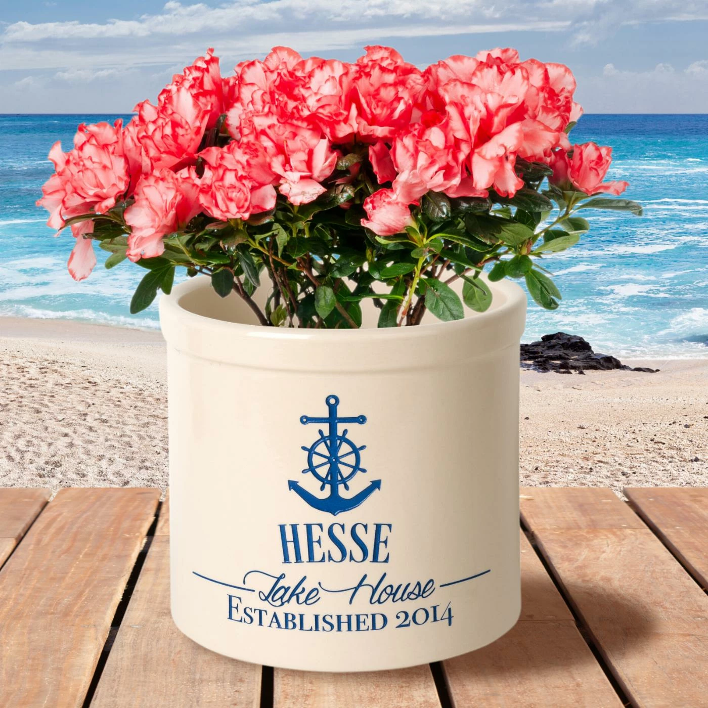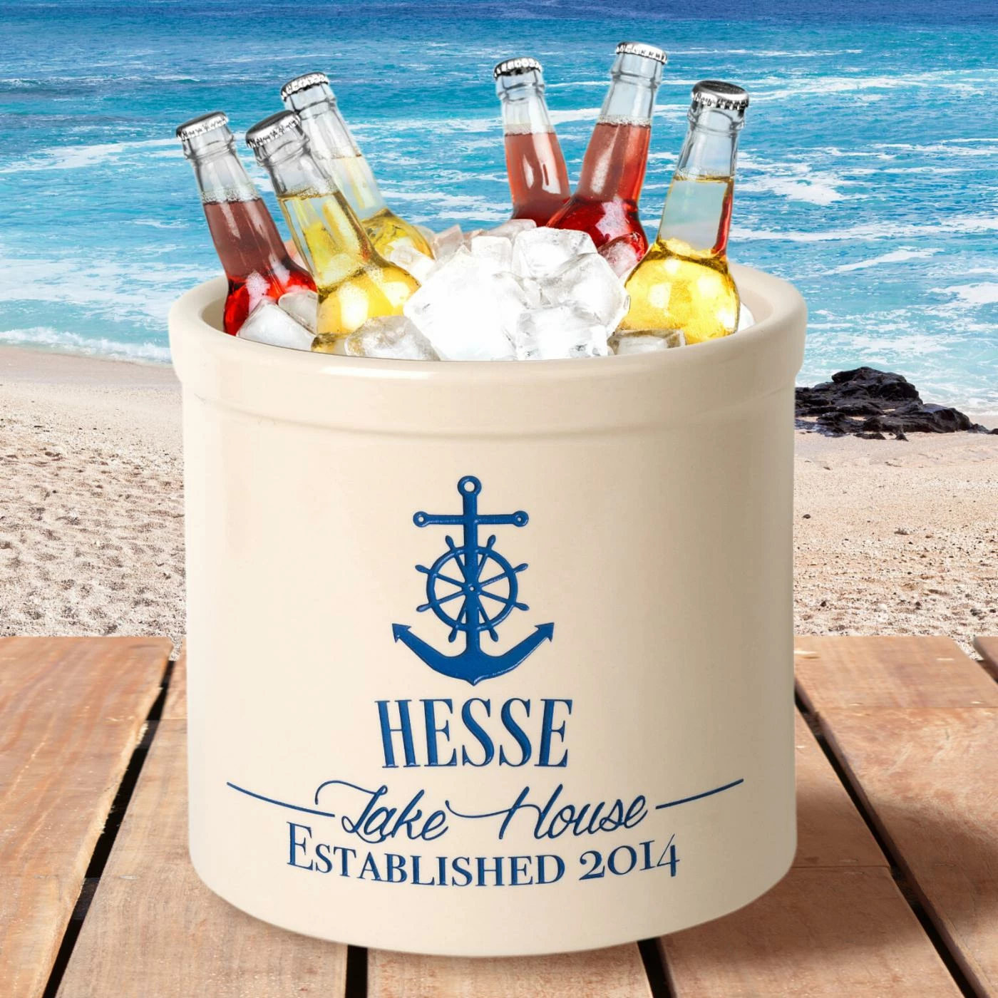 Decorate your nautical home in classic style with the Whitehall Personalized Anchor Lake House Crock. This classic crock boasts a personalized anchor and wheel motif in your choice of available finish.