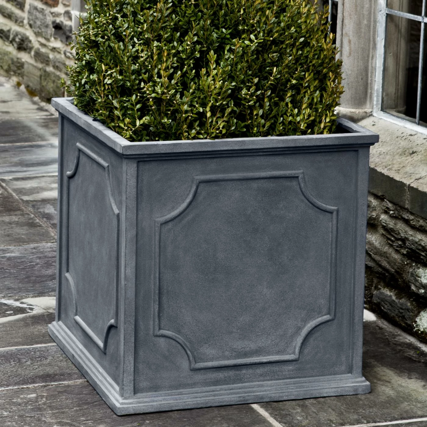 Create instant curb appeal with the Campania International Cumberland Medium Square Planter – Lead Lite. Refined and tailored, this planters is at home on any front porch, and is versatile to complement most plants. The design is crafted from fibercement, which is 99% biodegradable and up to 25% lighter than cement. These planters are crafted for durability to last for years of enjoyment.