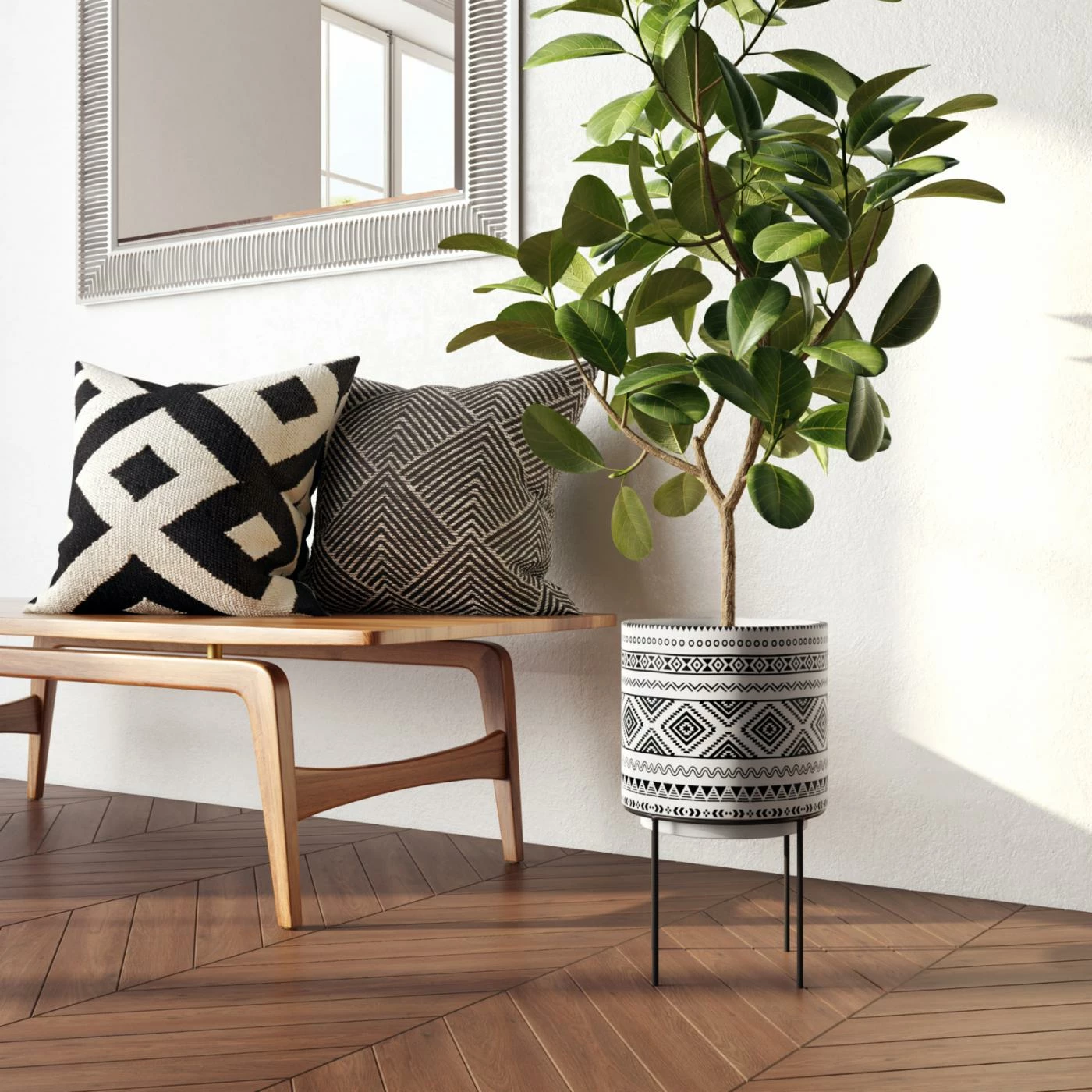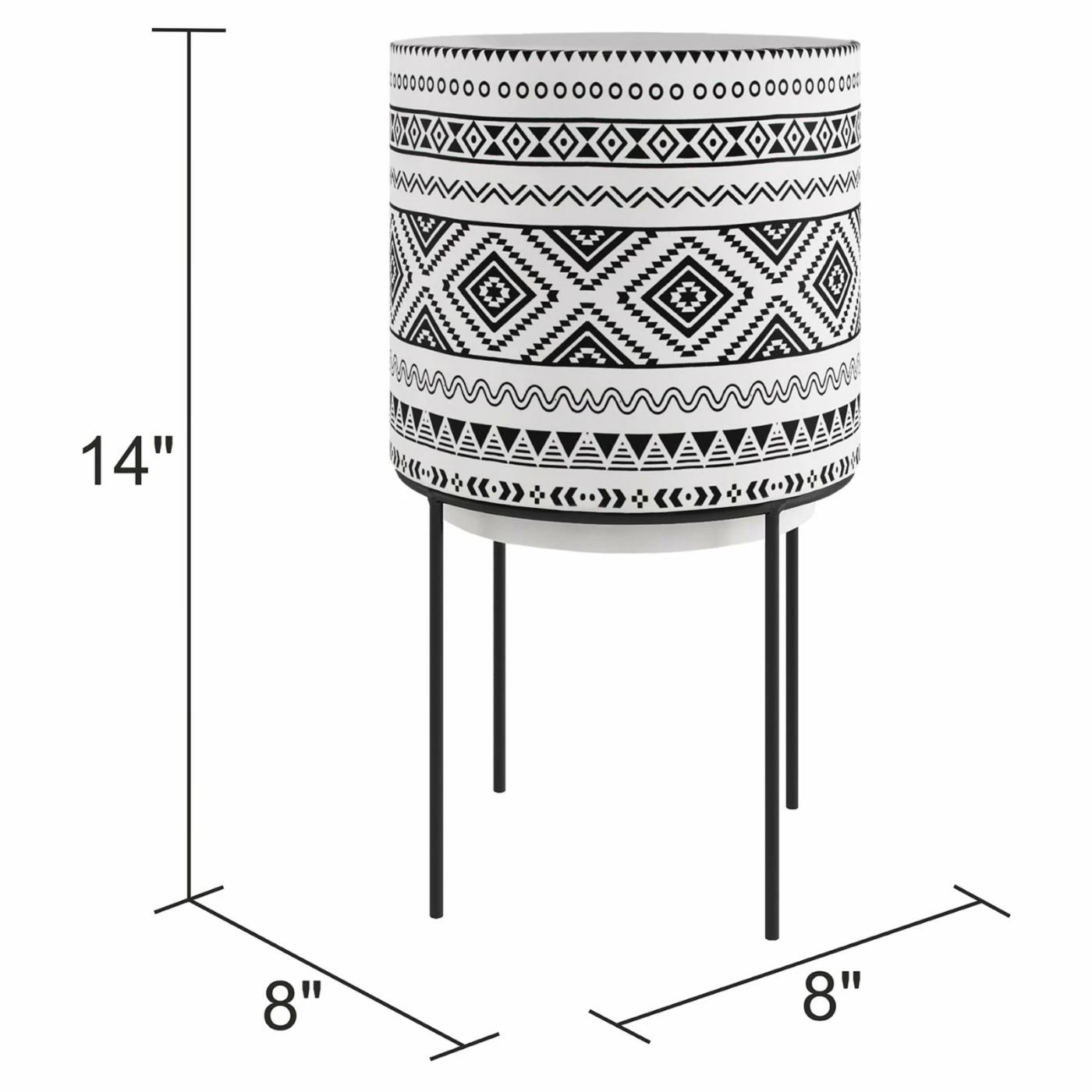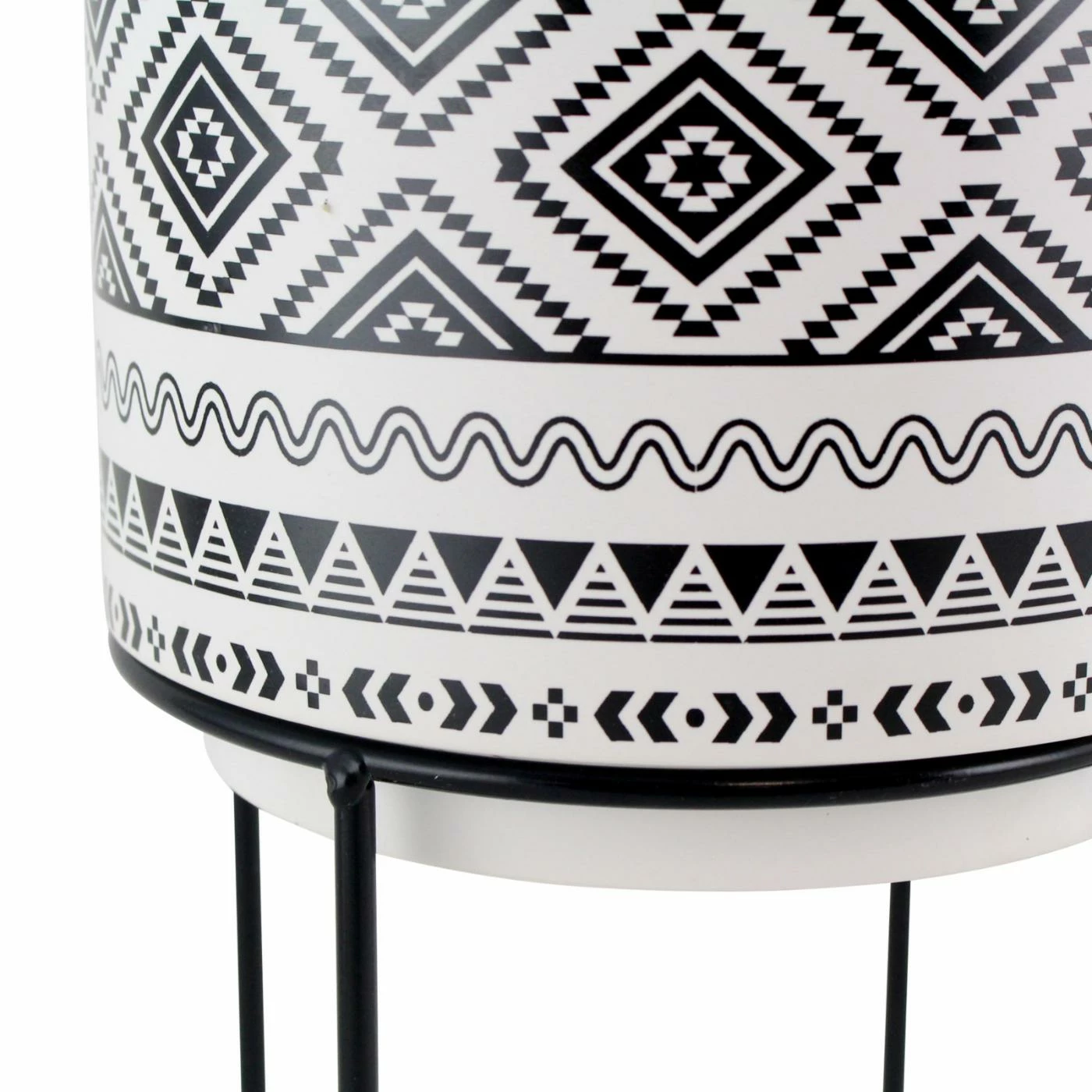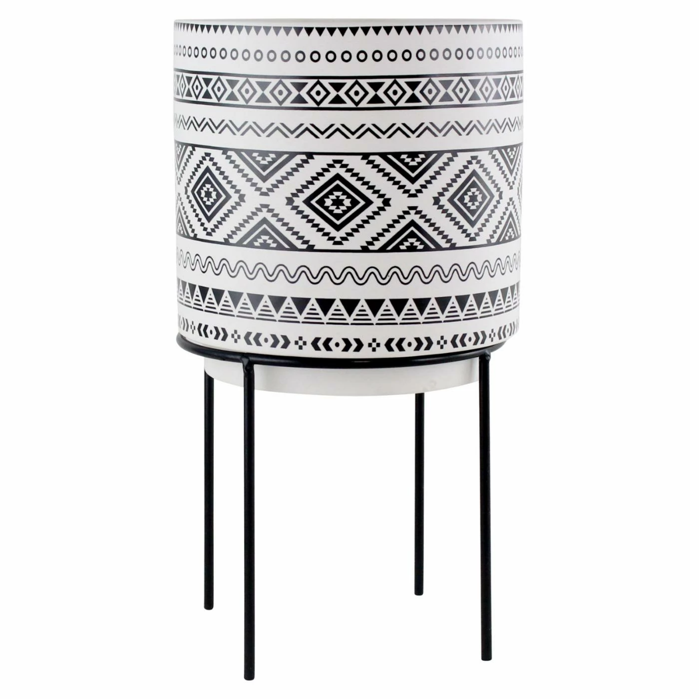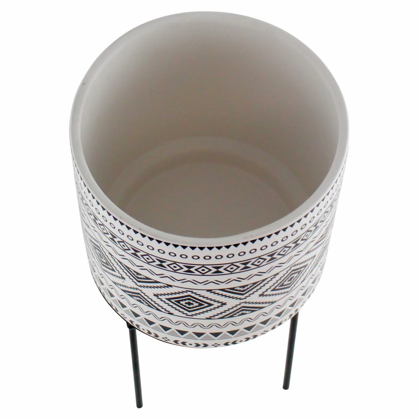 Use the Aspire Home Accents Mateo Modern Ceramic Planter to display your favorite plants, faux or no. This planter is crafted of ceramic, and sits in a metal stand. The finish shows a white background with black geometric patterns inspired by American southwest art.