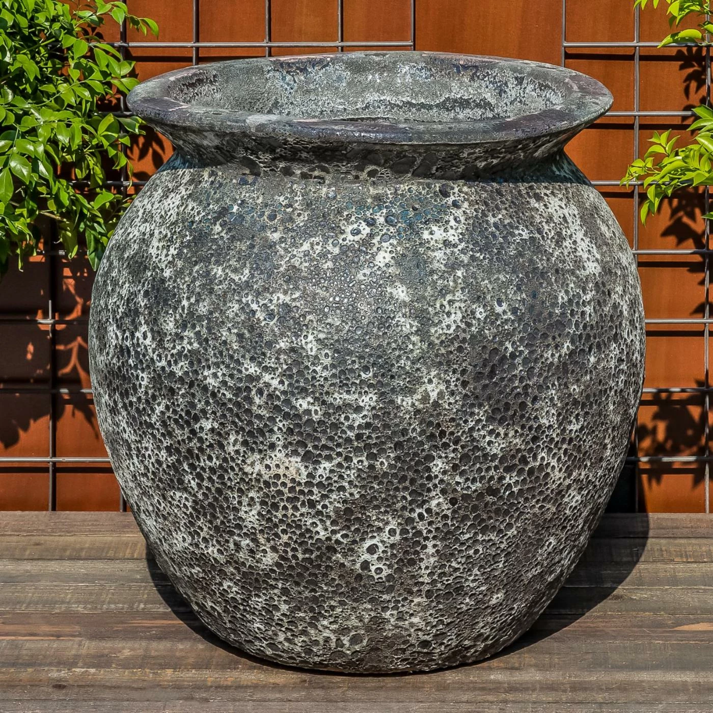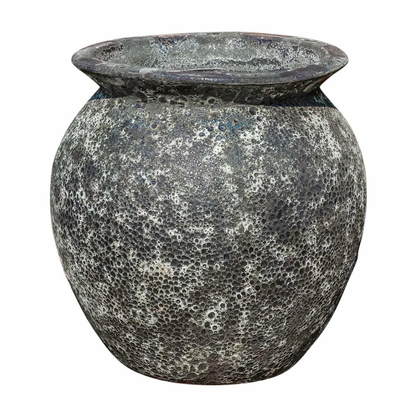The Campania International Ibis Jar showcases a robust urn shape with contoured walls and a rolled rim. This jar planter is crafted of terracotta ceramic and features a textured design. Finished with distressed details, this jar planter lends a vintage accent to your outdoor living area.