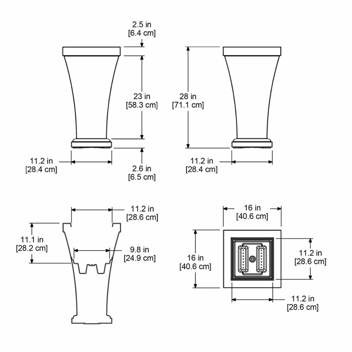 - Dimensions: 16W x 16D x 28.5H in.