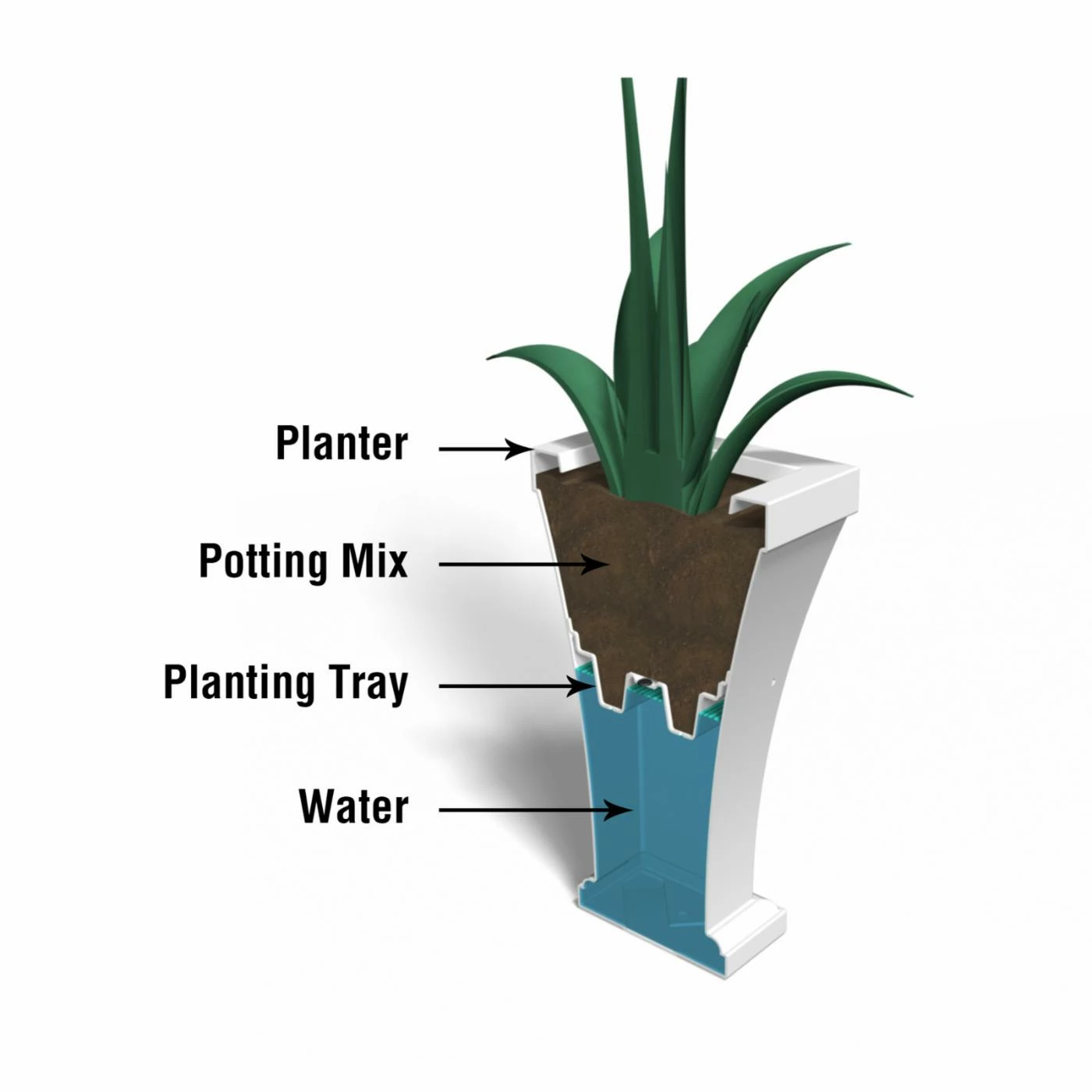 - Tray creates sub-irrigation water system & promotes root growth