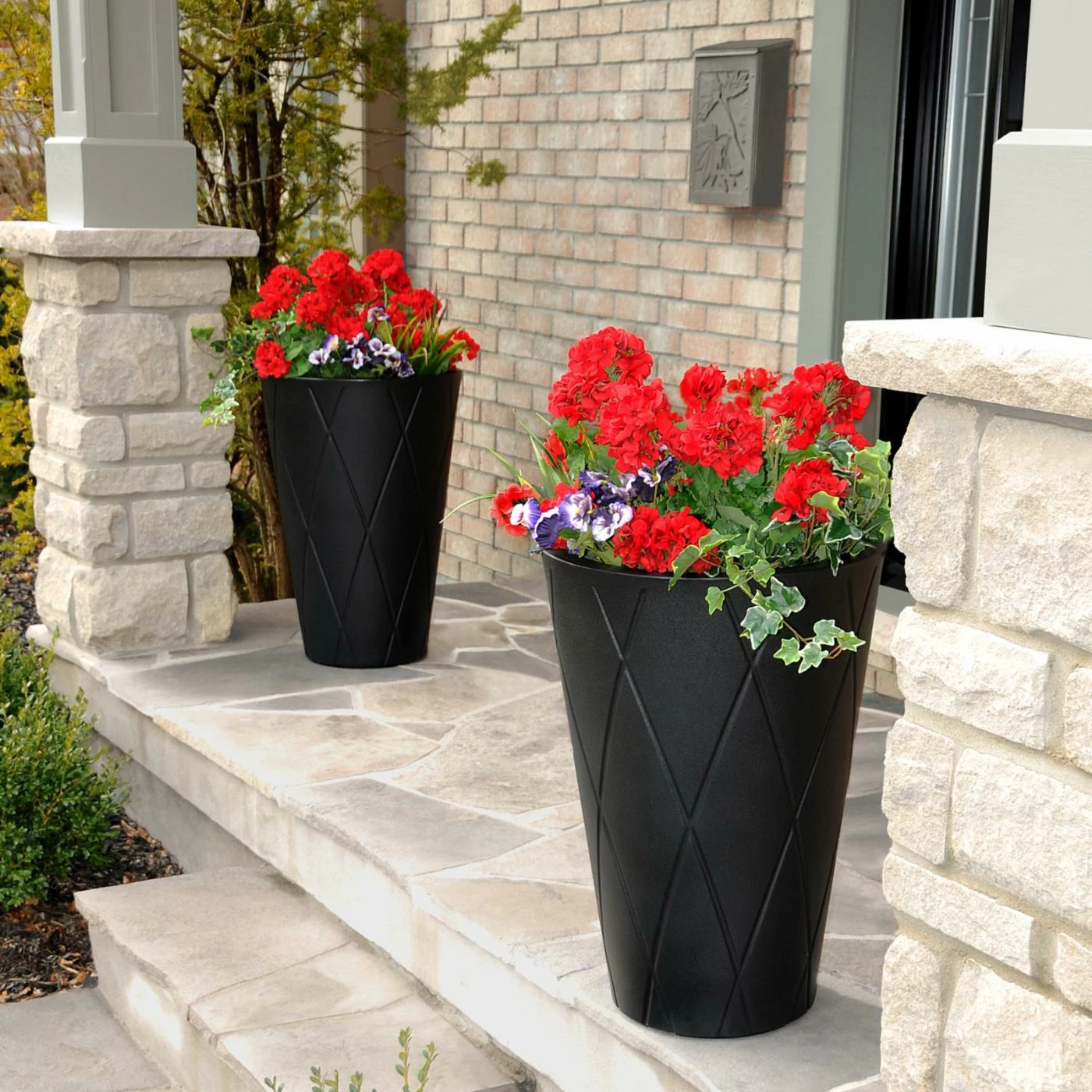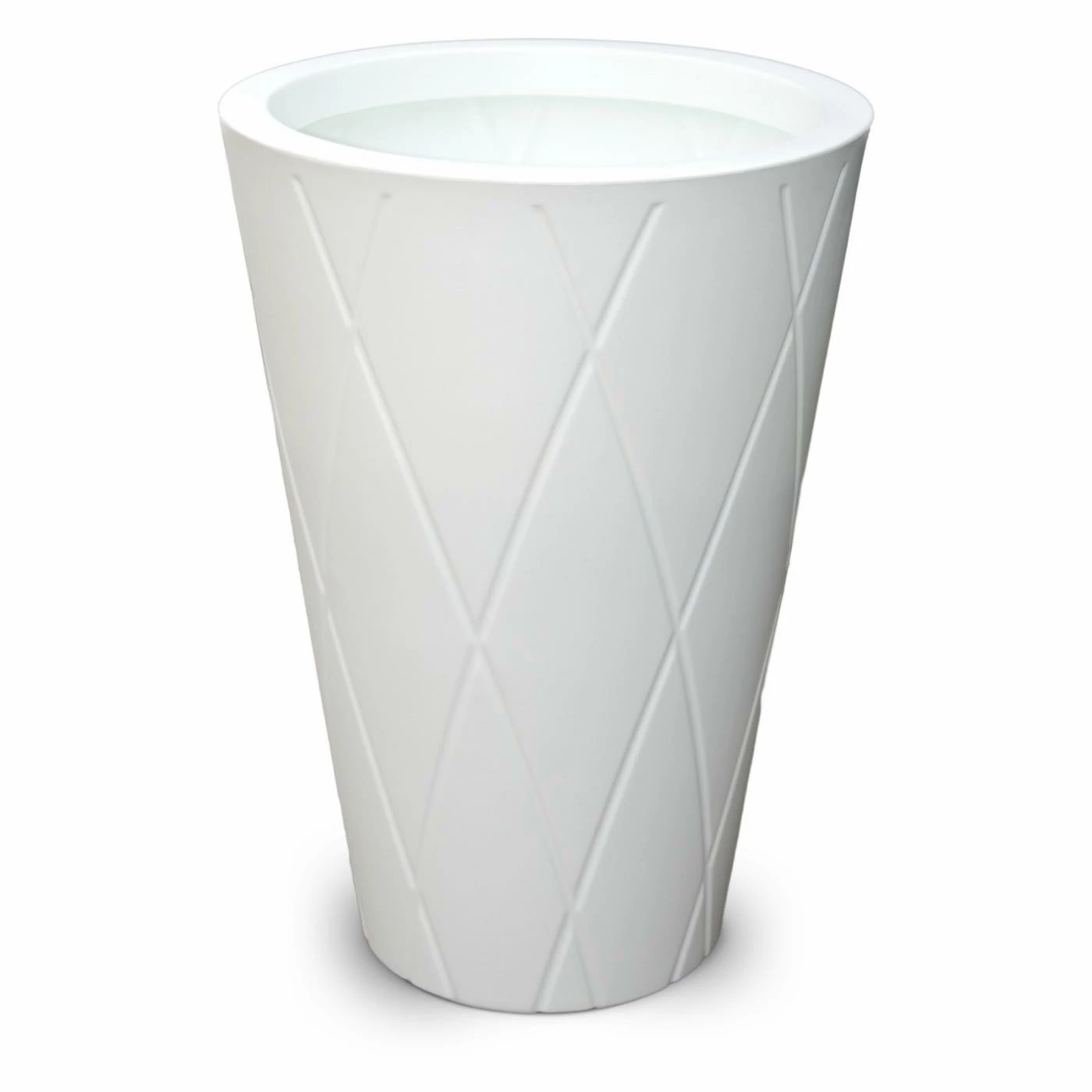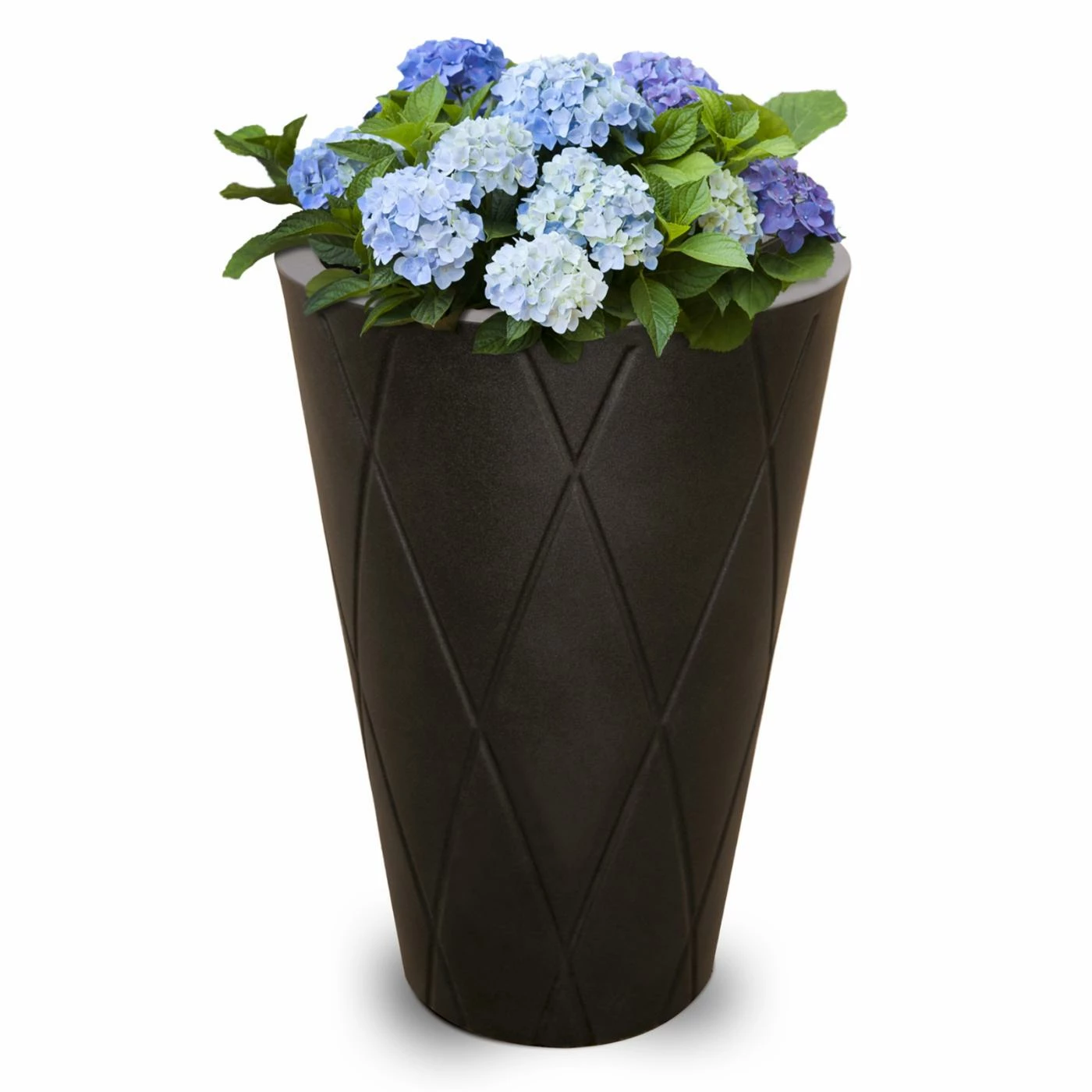 The clean look of a ceramic design is constructed with durable, weather-proof polyethylene on the Mayne Versailles Self-Watering Planter. This planter allows you to enjoy healthy blooms without as much work. A self-watering tray in the bottom encourages root growth and holds six gallons of water. It features a tough design with UV inhibitors to prevent fading. Choose from available finishes to best coordinate with your indoor or outdoor space.