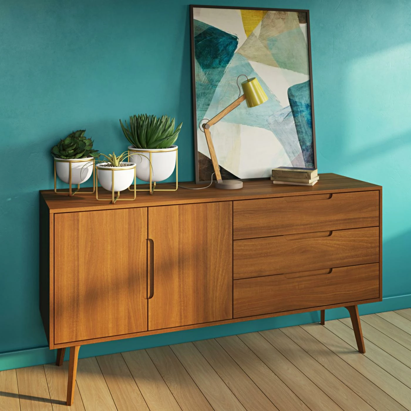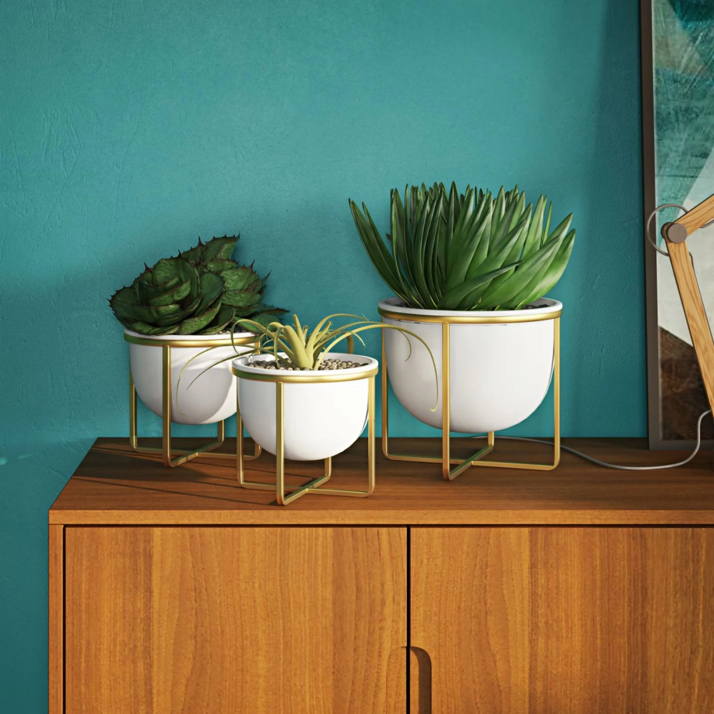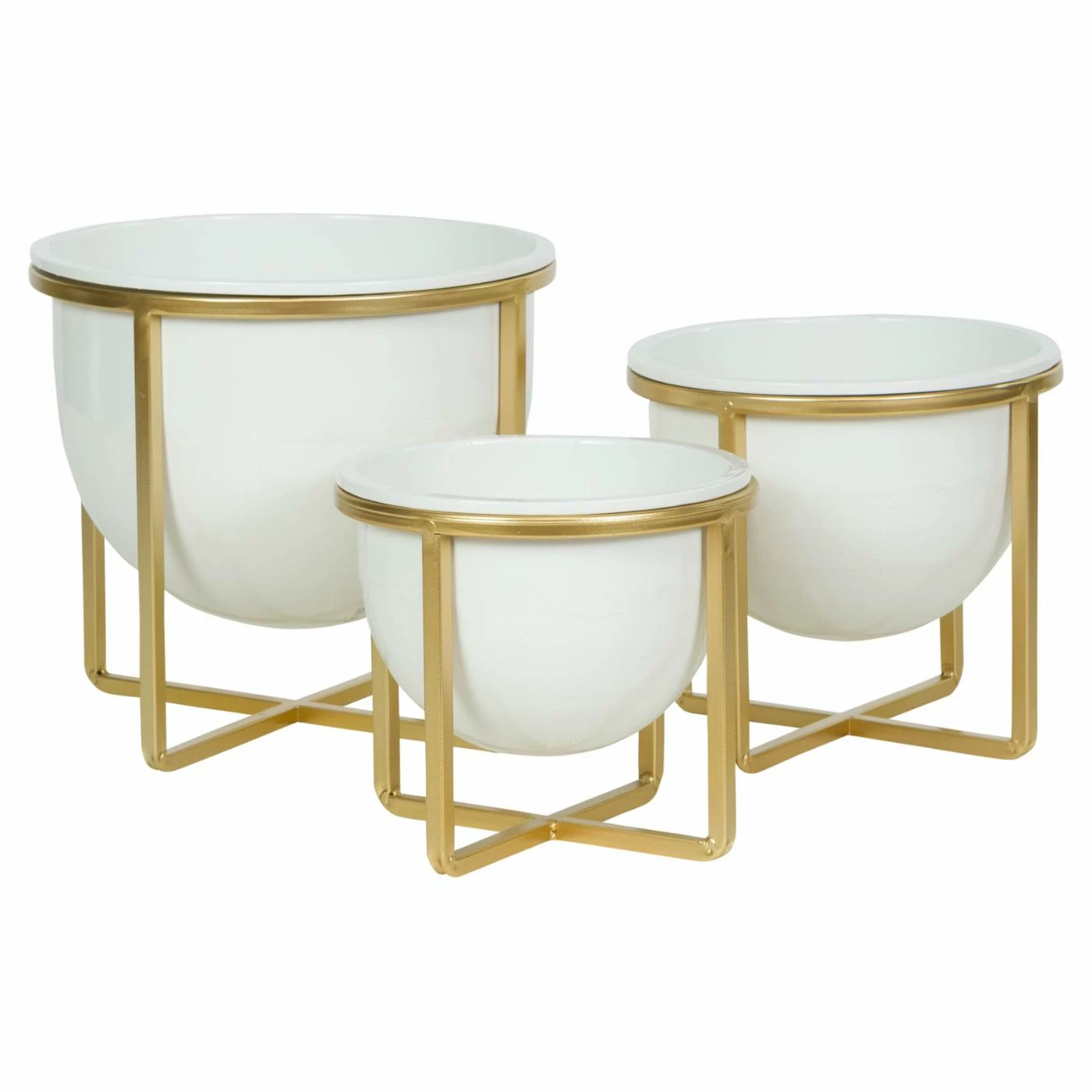 Update the style of your pet plants’ home by brining in the Aspire Home Accents Kendi Mid-Century Modern Planter – Set of 3. These three planters each boast a white finish, and sit in a raised stand in a gold finish. These metal planters boast metal construction.