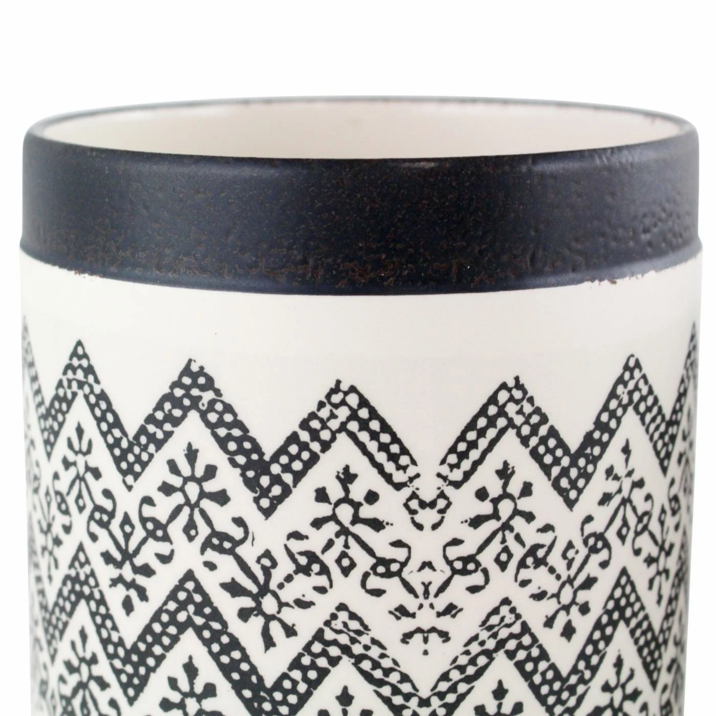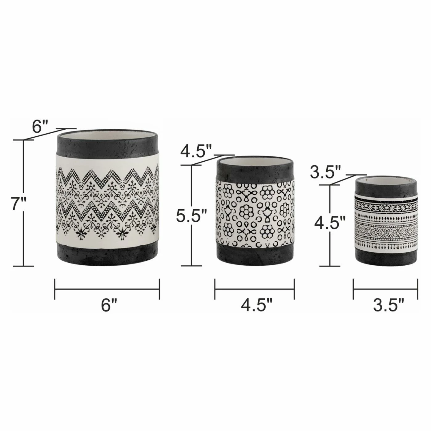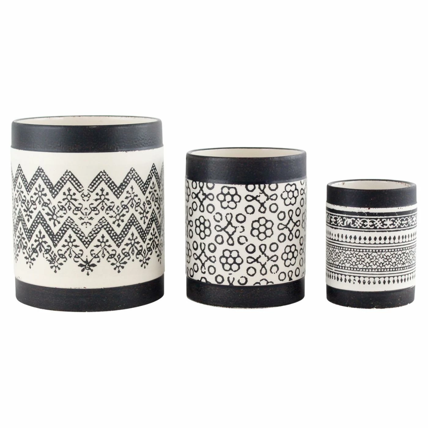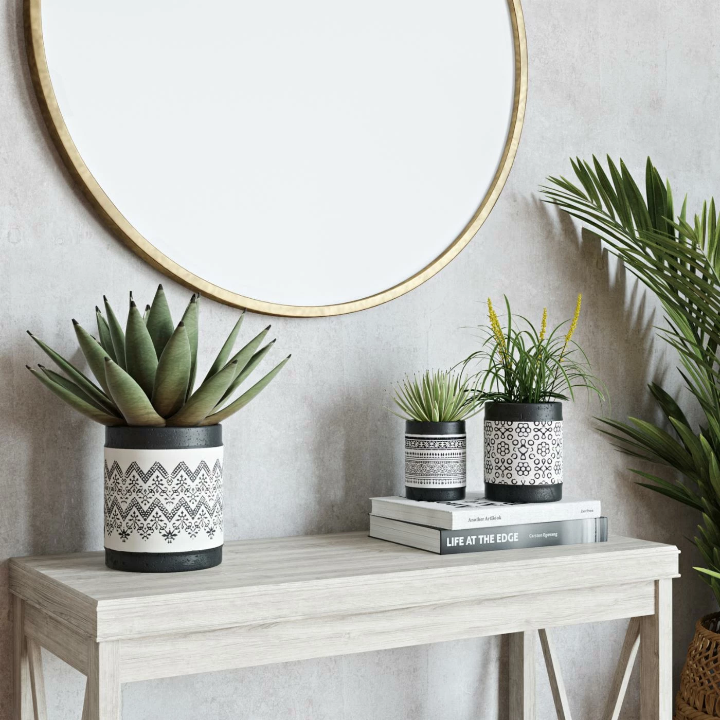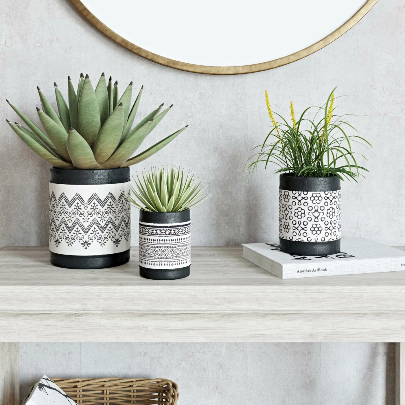 Display your favorite house plants in style by giving them the Aspire Home Accents Nikos Ceramic Planter – Set of 3. Each one of this trio of planters features ceramic composition. In three different sizes and three different designs, the black and white finishes depict fine geometric line work with a subtle antique look.