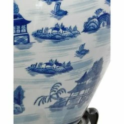 Promo π Novelty Oriental Furniture Blue & White Landscape Porcelain Fishbowl Planter π―