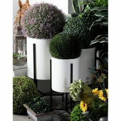 Best Pirce π Novelty DecMode Modern Iron White And Black Drum Planters With Stand – Set Of 3 π