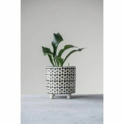 Cheapest 😍 Planter Pots 3R Studios White Stoneware Planters With Black Designs – Set Of 2 🎁