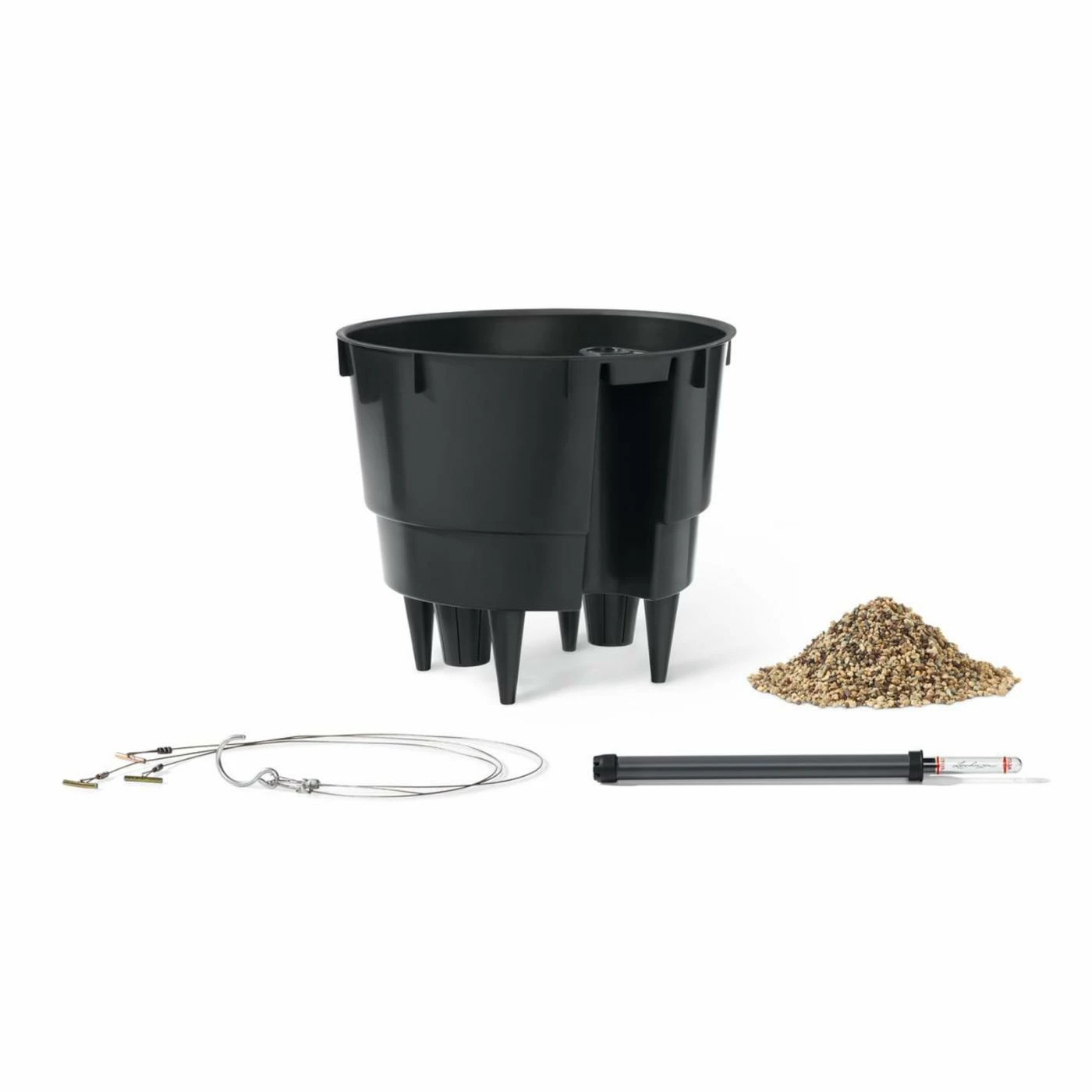 This modern, cube-inspired planter uses a self-watering, sub-irrigation system to nourish your plant. The included separator piece forms a reservoir in the base of the removable planter liner. A supply shaft with water level indicator runs along the inside edge of the liner, making it easy to add water and liquid fertilizer while maintaining complete watering control. A layer of LECHUZA-PON granulate drainage material lies on top of the separator and regulates the amount of water your plant receives – no more rotten roots!