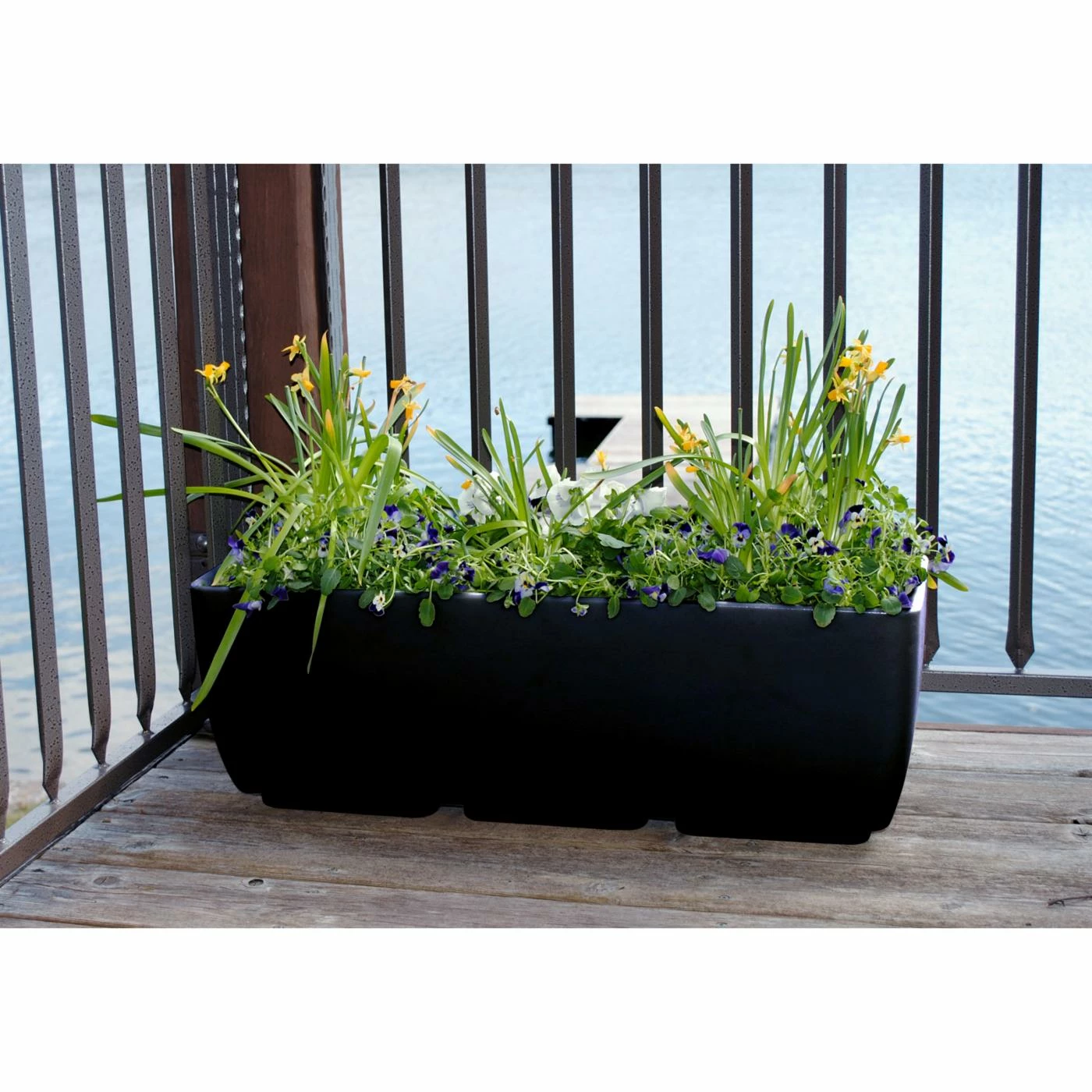 Go green with the RTS Urban Planter. This earth-friendly trough planter is crafted of recycled plastic. The unique urban black finish doesn’t draw attention to itself, and it’s made to withstand winter weather and hot summer sun. You’ll appreciate the simplicity of the design and how easy it can be to add color to any outdoor space, even a small patio or balcony!