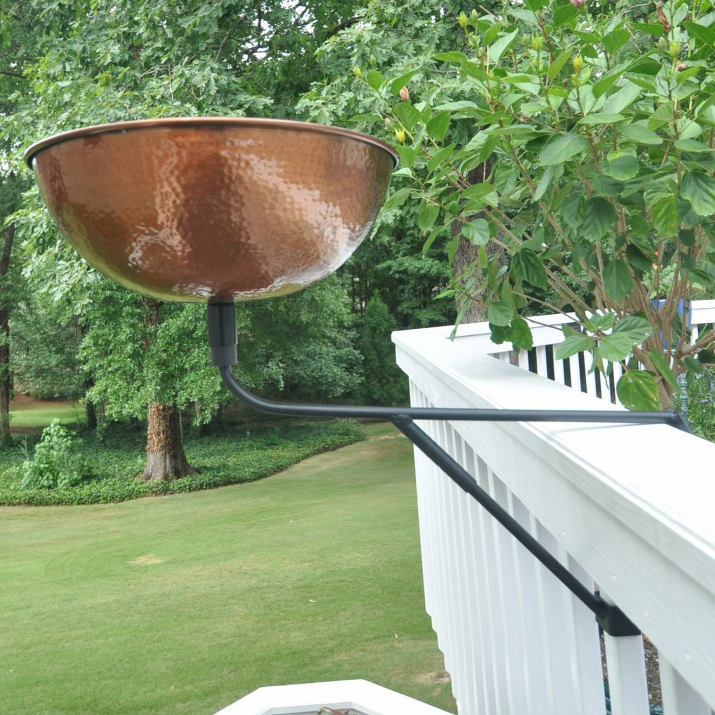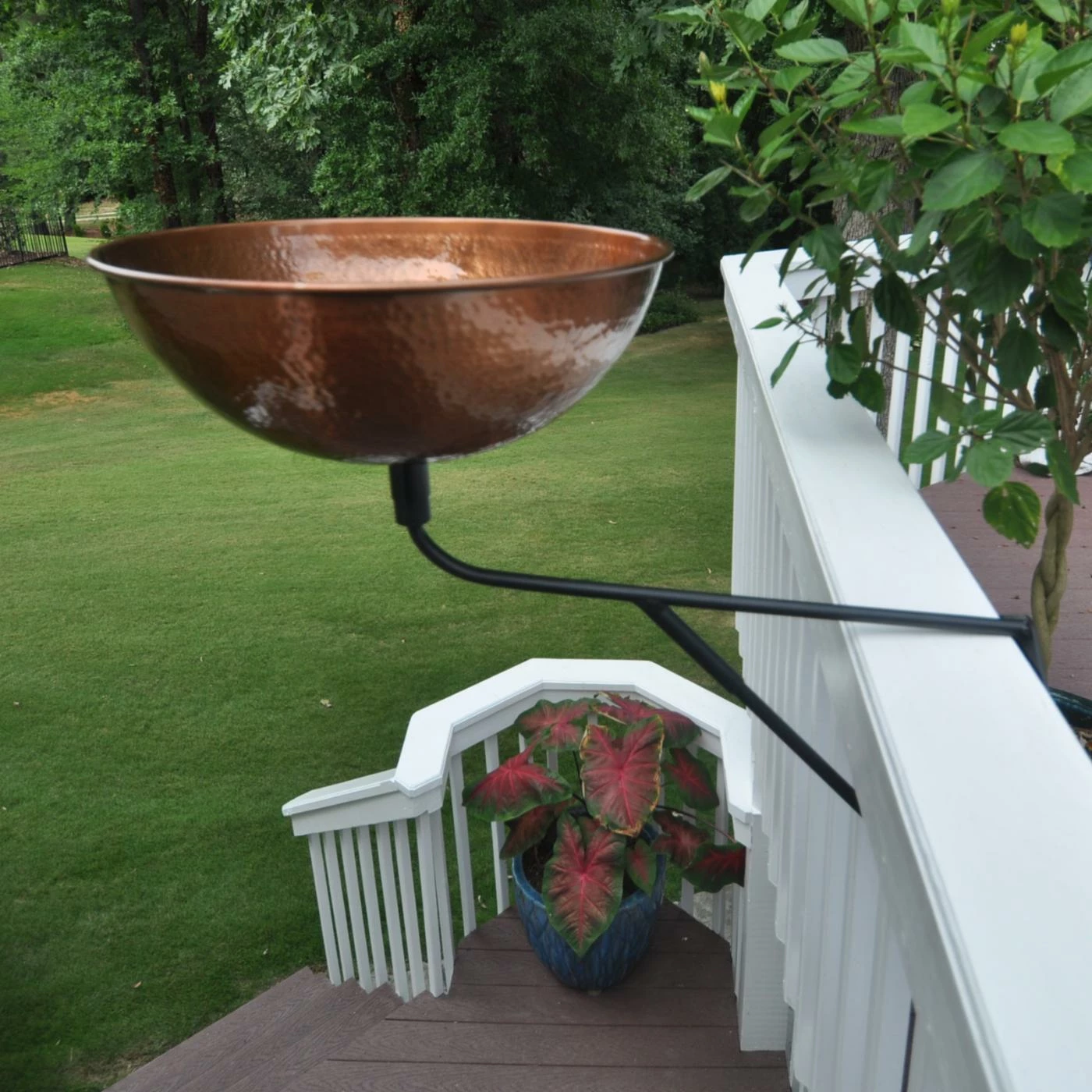 The Starlight Garden & Patio Torche Copper Planter with Deck Mount boasts a round shape with high wall and a copper finish. Crafted from aluminum, bird bath is a lovely addition to any yard or garden and comes with a deck mount that easily attaches to a deck or fence rail.