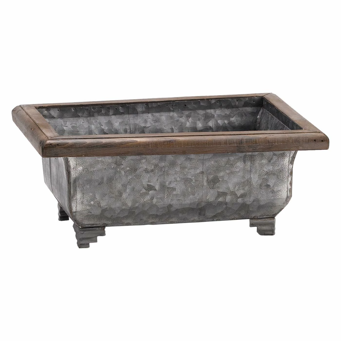 Add refined country charm to your home with theΒ D and W Silks Rectangle Wood Trim Metal Planter. This planter has a durable metal construction with a rustic wood trim accent. Enjoy your choice of available size options.