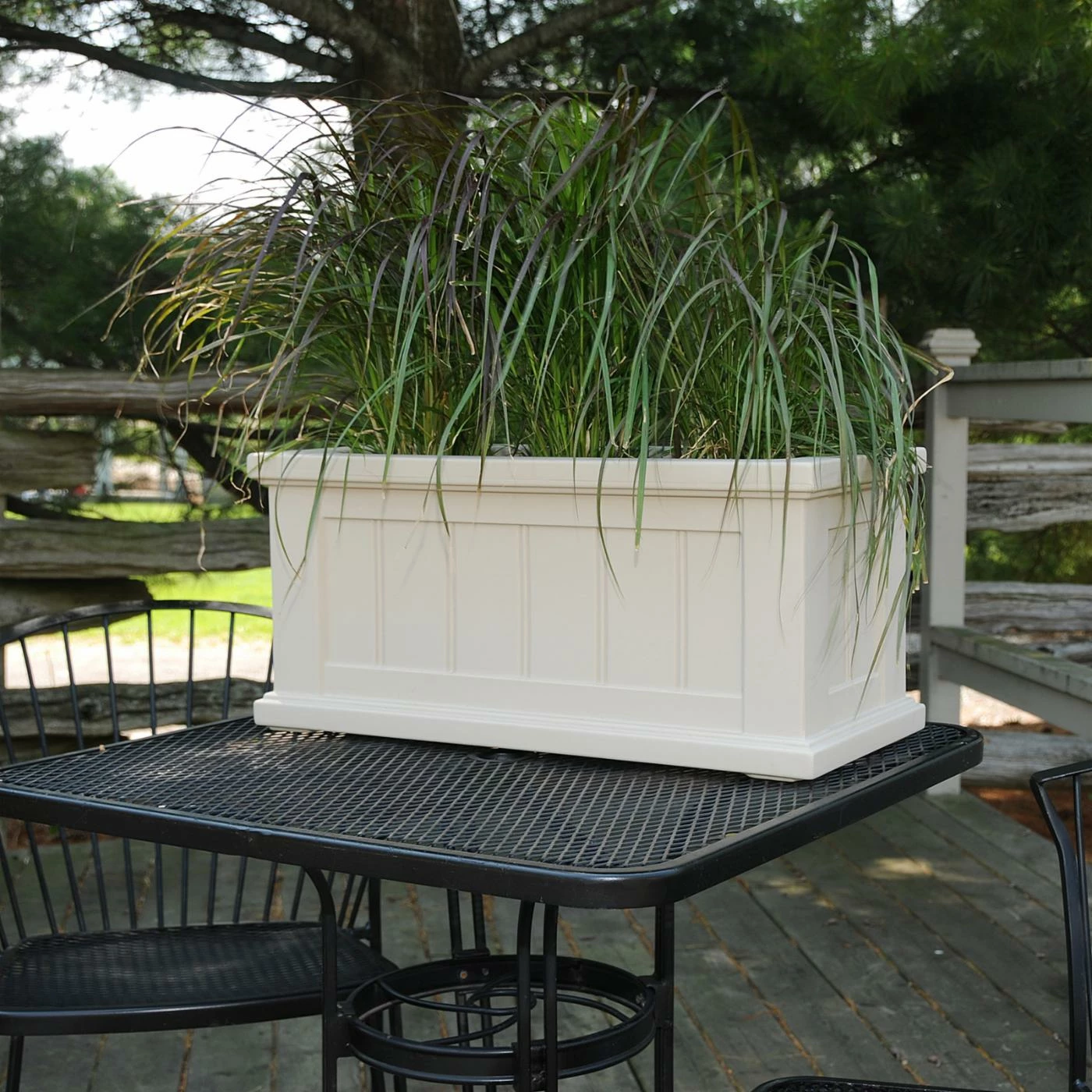 Add style, elegance, and color to your outdoor decor with the Mayne Rectangle Polyethylene Cape Cod 24 x 11 Patio Planter. With its gorgeous and rich architectural design and available in your choice of color, this planter displays your favorite plants and flowers beautifully. Featuring a water-reservoir that creates a self watering effect and a sub-irrigation water system which encourages root growth, this planter is a great choice for anyone who loves gardening.