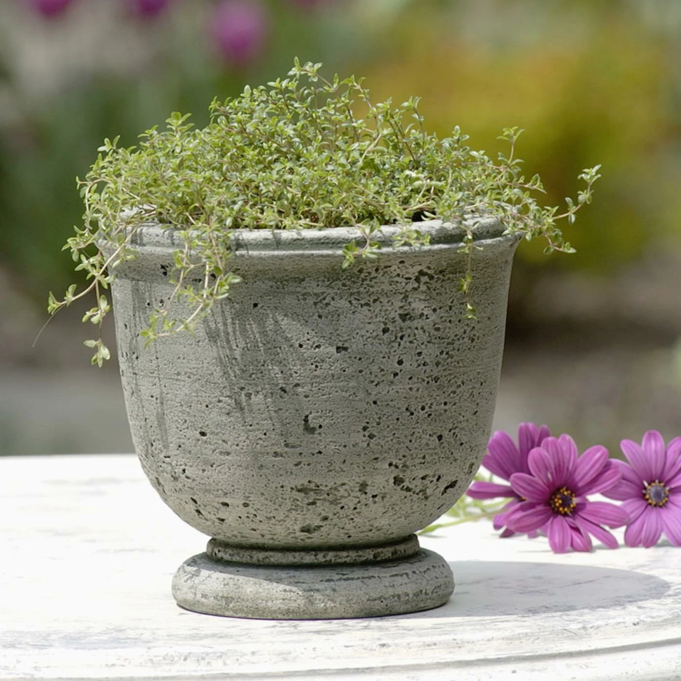 Textured for an aged look and available in a wide variety of patina finishes, the Campania International Arles Cast Stone Planter creates a handsome backdrop for your favorite blooms. This planter offers a generous planting depth and is crafted of cast stone using a 15-step process. It will withstand the elements beautifully.
