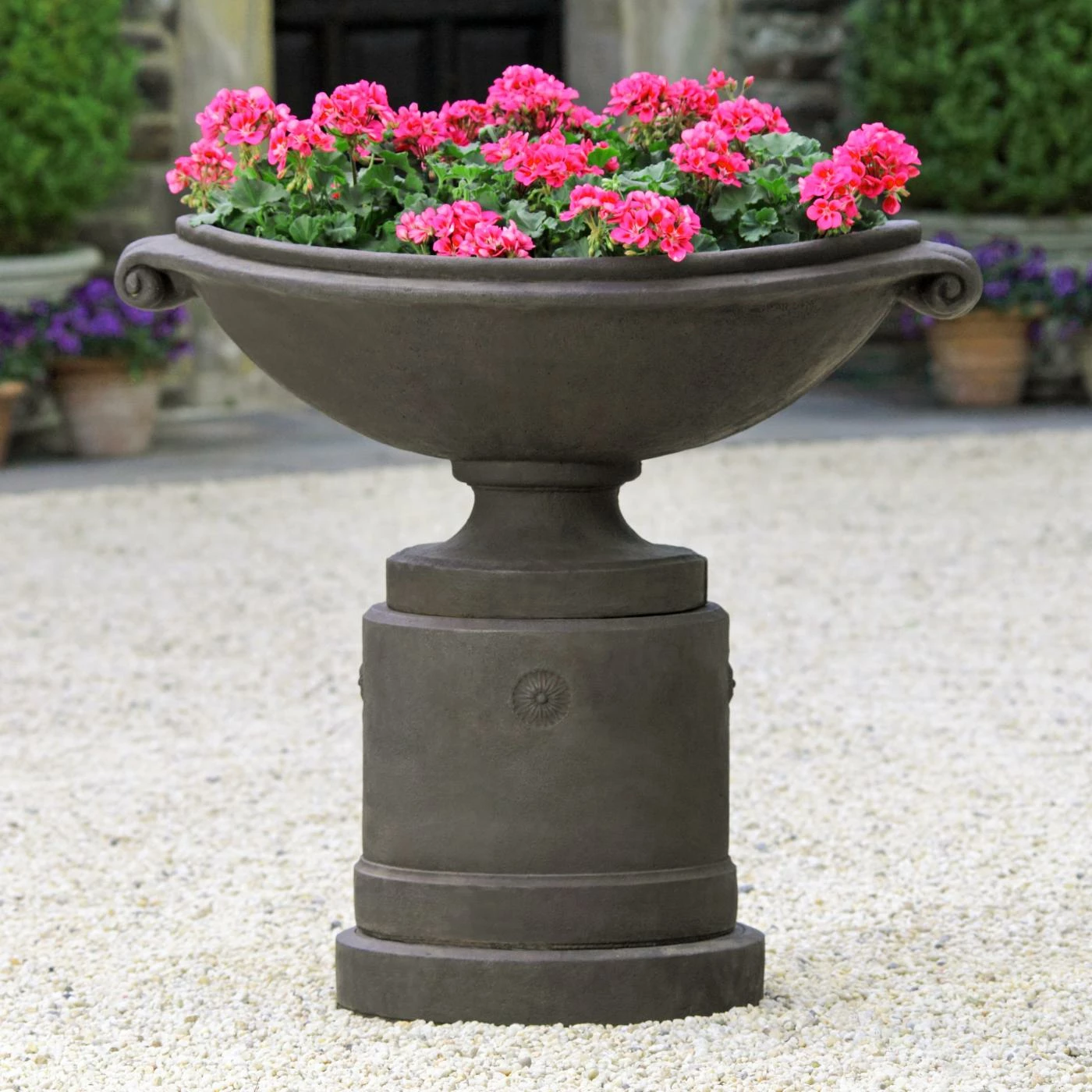- Urn shape with round pedestal base